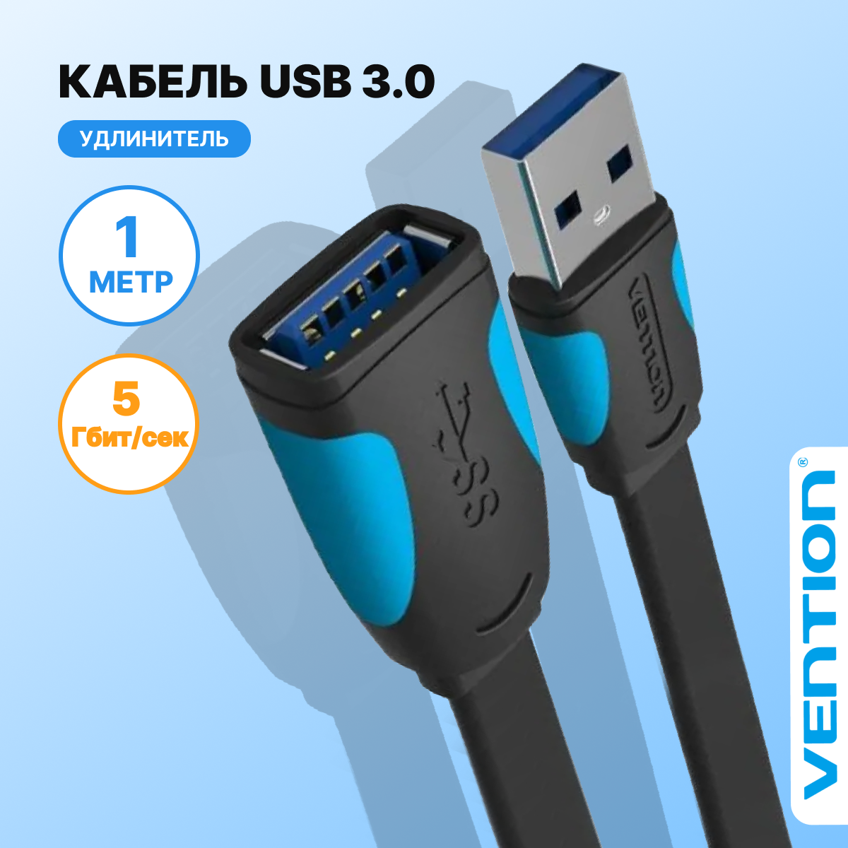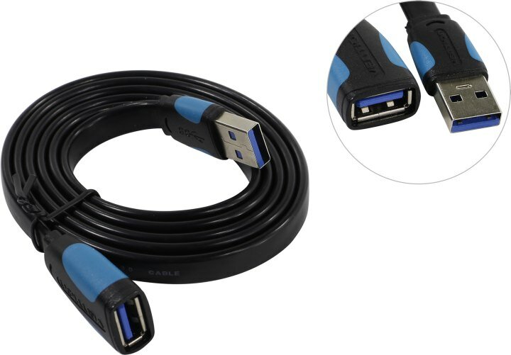 VAS-A13-B100, Vention USB 3.0 AM/AF - 1м, Кабель-удлинитель Vention USB 3.0 AM/AF - 1м плоский