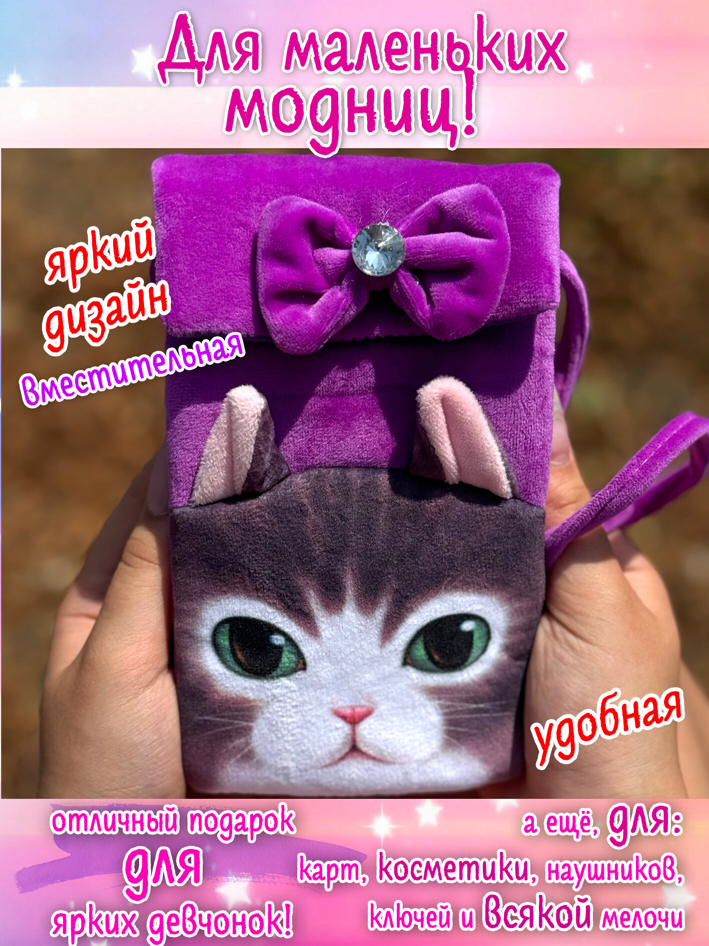 Ниже Вы можете прочитать отзывы на Сумочка чехол "Котята" для девочек, ознакомится с подробными характеристиками, посмотреть интересные обзоры и фотографии на Сумочка чехол "Котята" для девочек.