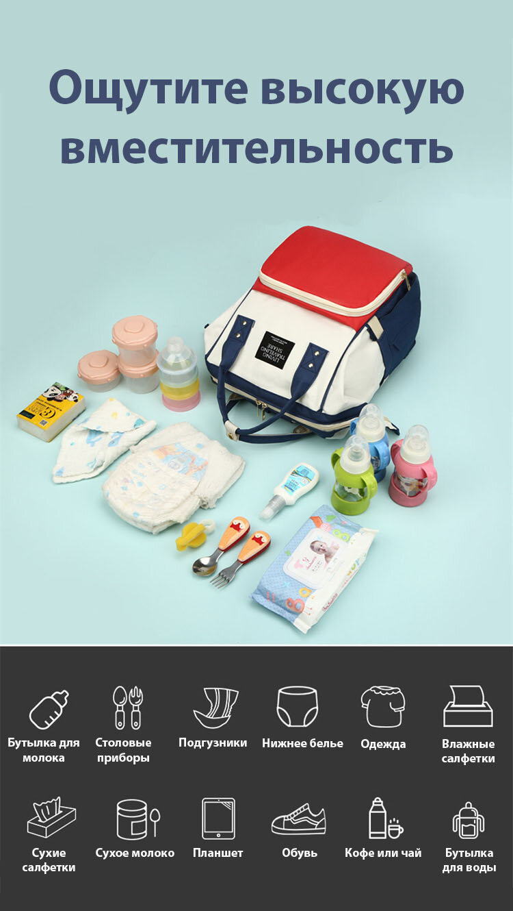 Рюкзак для мамы / Сумка на коляску для мамы / Сумка-рюкзак универсальный женский, бело-красный интересное: