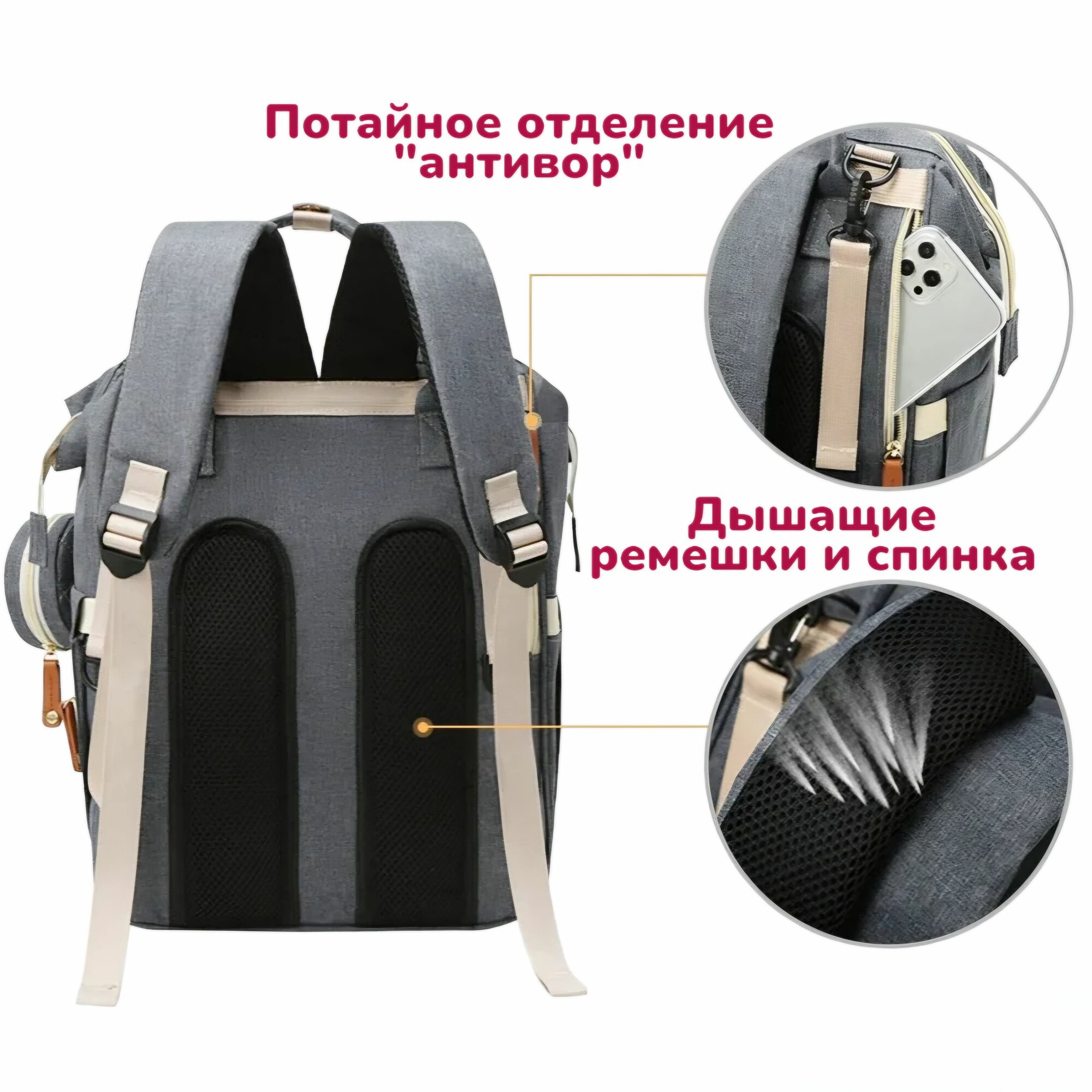 Рюкзак-сумка трансформер для мам для коляски прогулочной и путешествий интересное:
