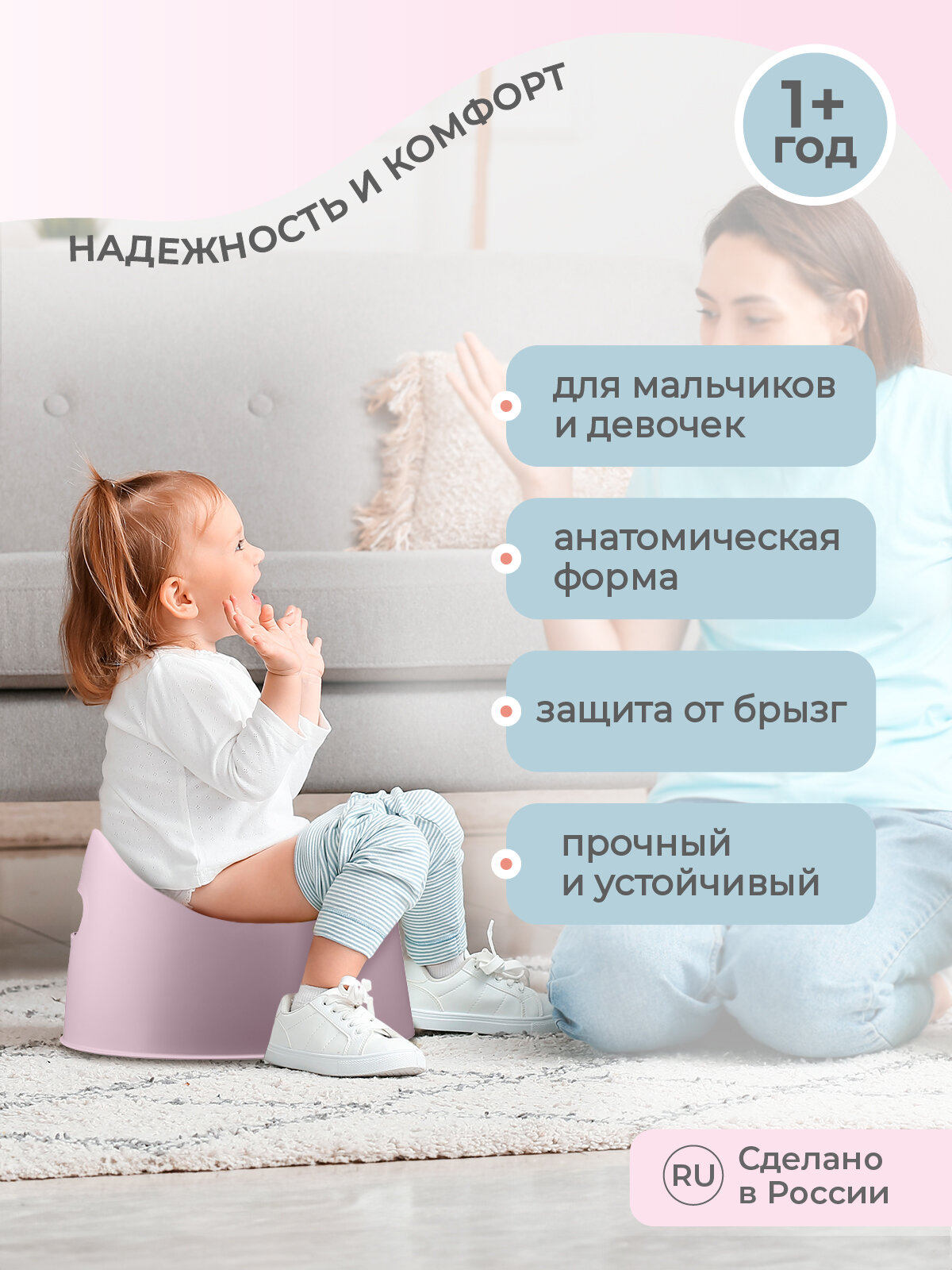 Горшок детский для девочки, детей от года пластиковый, со спинкой, защитой от брызг, дорожный 1+