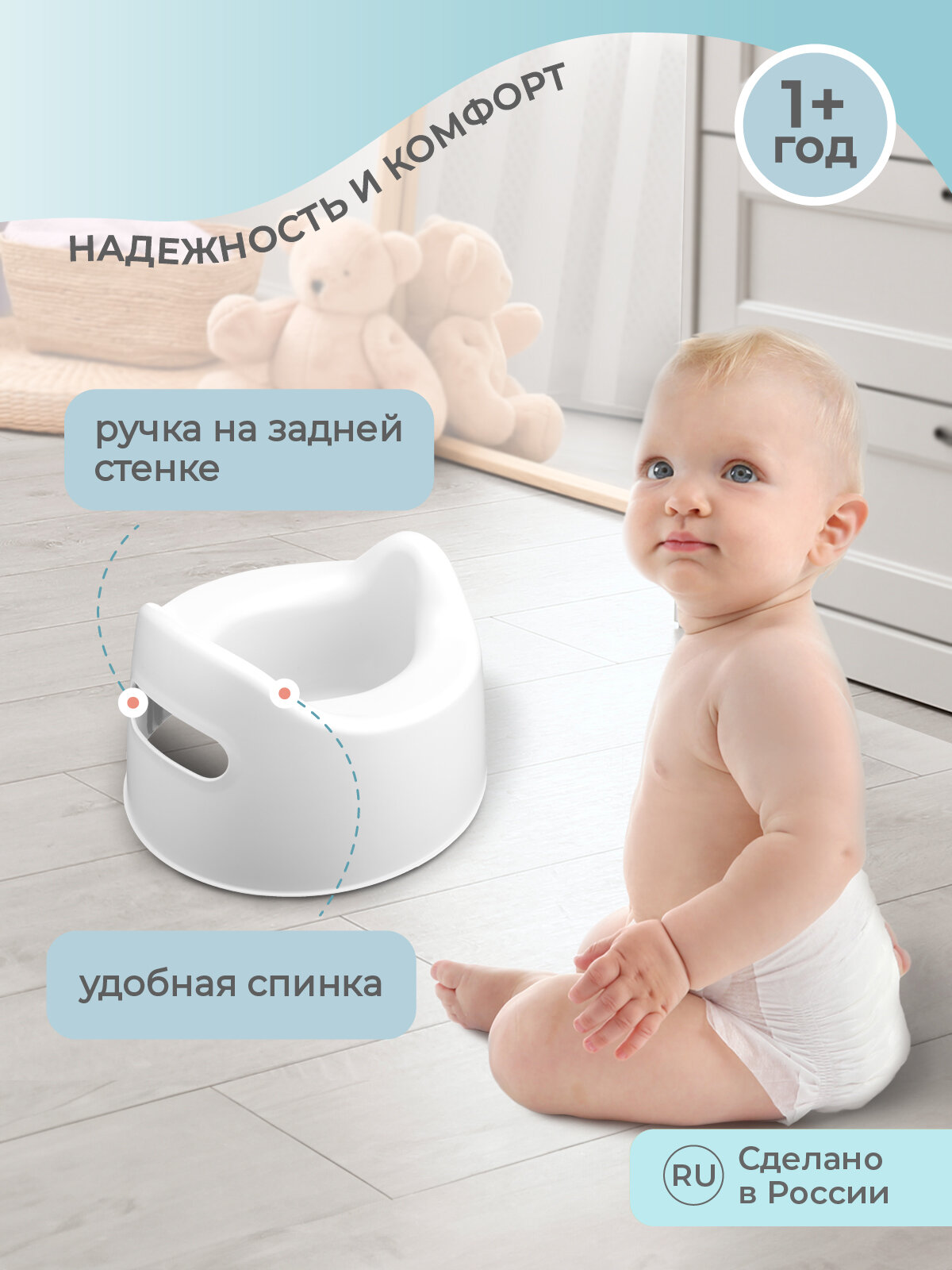 Горшок детский для мальчика и девочки от года пластиковый с рисунком, со спинкой, защитой от брызг, дорожный 1+