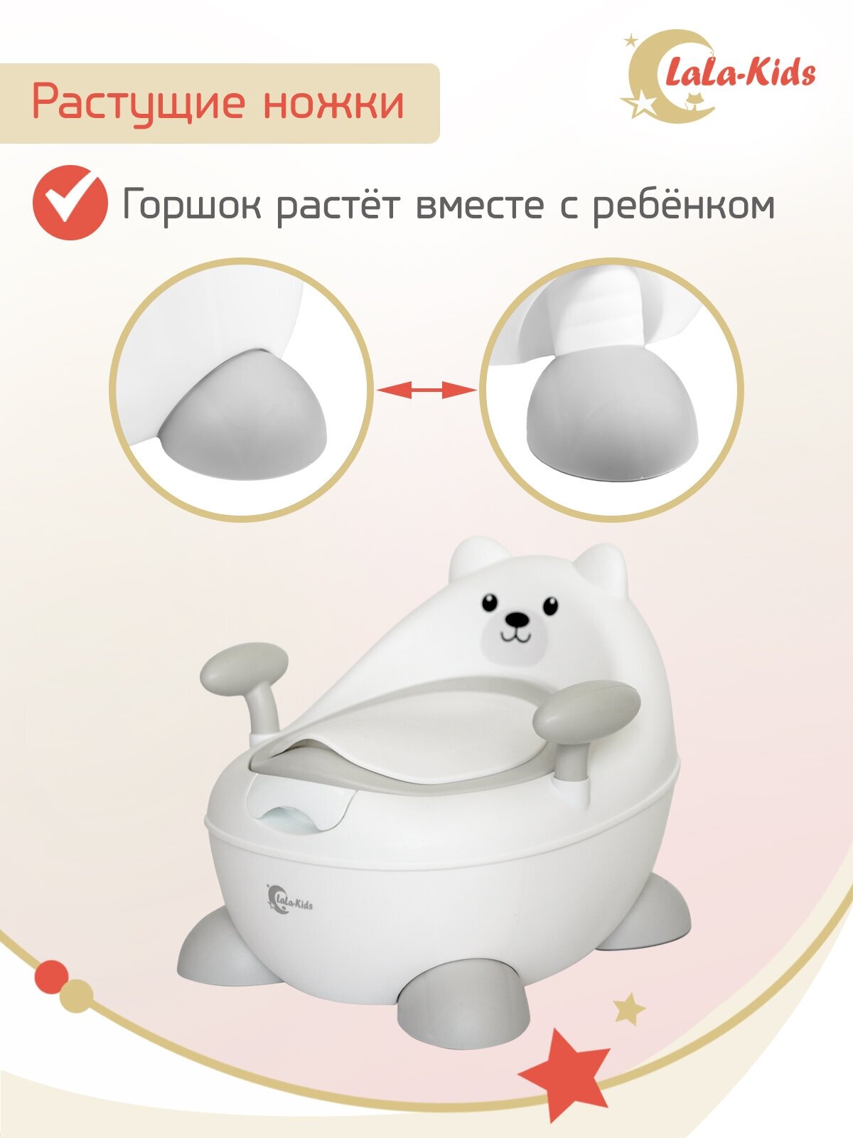 СохранитьГоршок детский LaLa-Kids "Медвежонок" для мальчика и девочки, высокий с ножками ручками спинкой и крышкой белый интересное:
