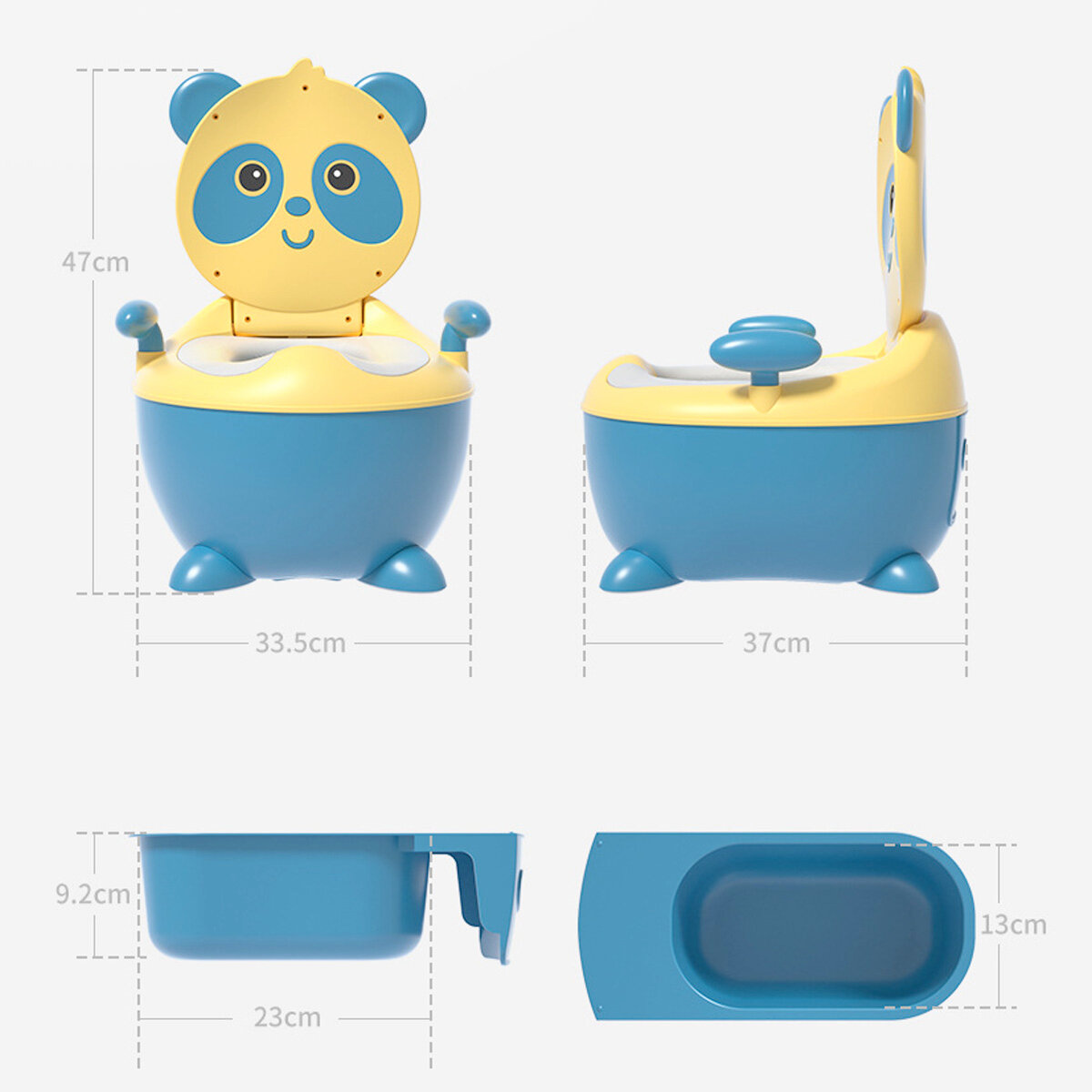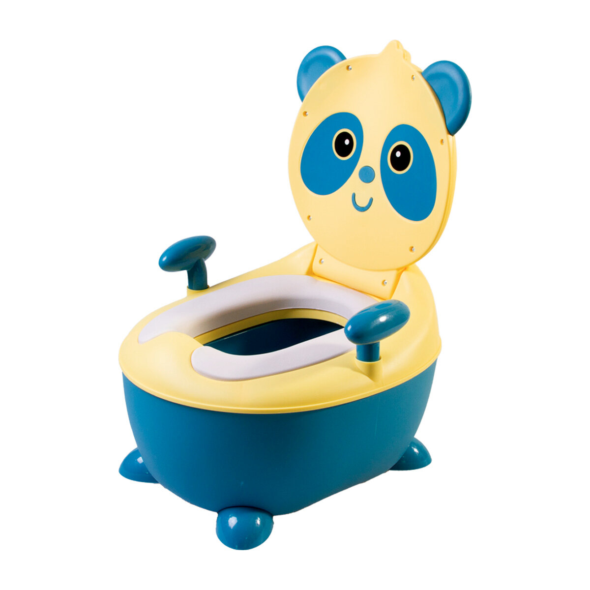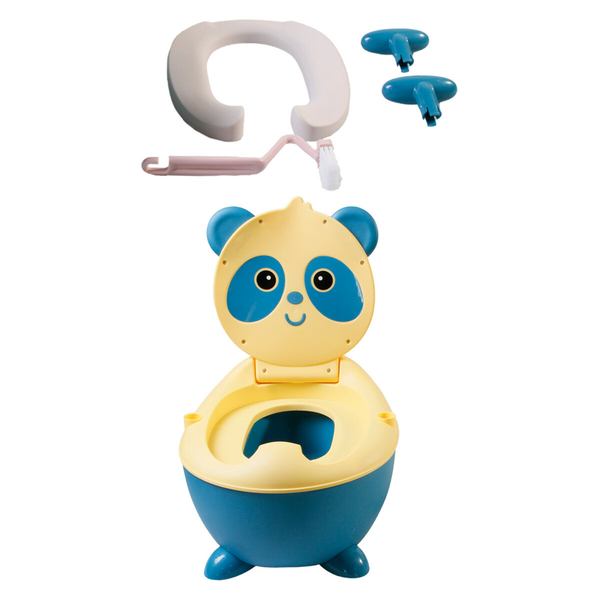 Купить Горшок детский с мягким сиденьем, ручками и крышкой, ершиком, Панда (синий)