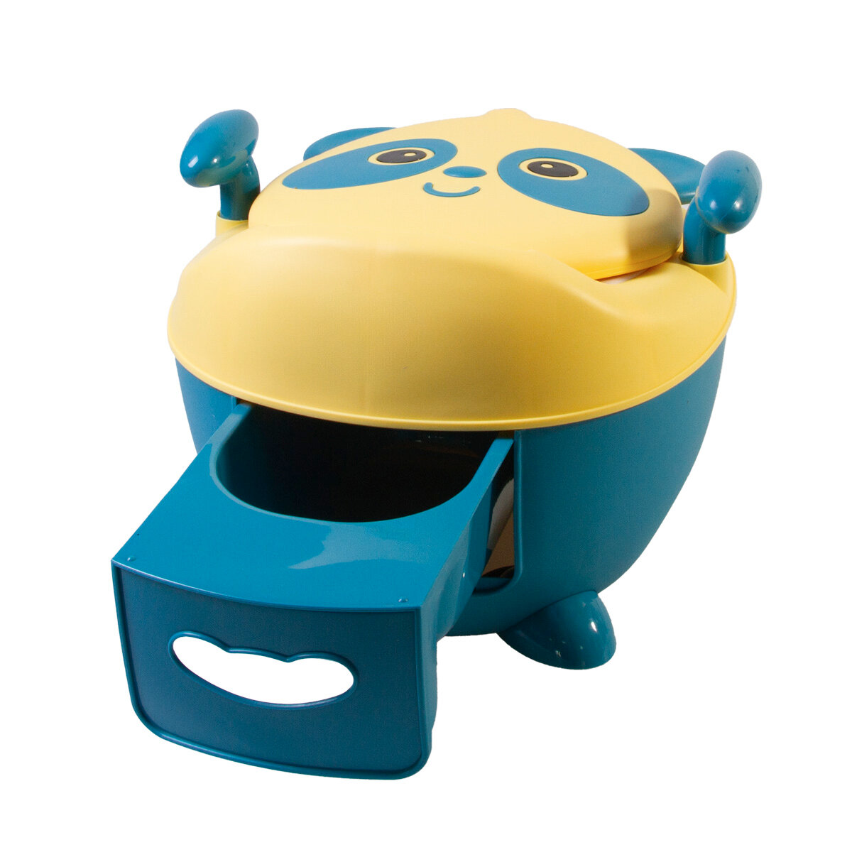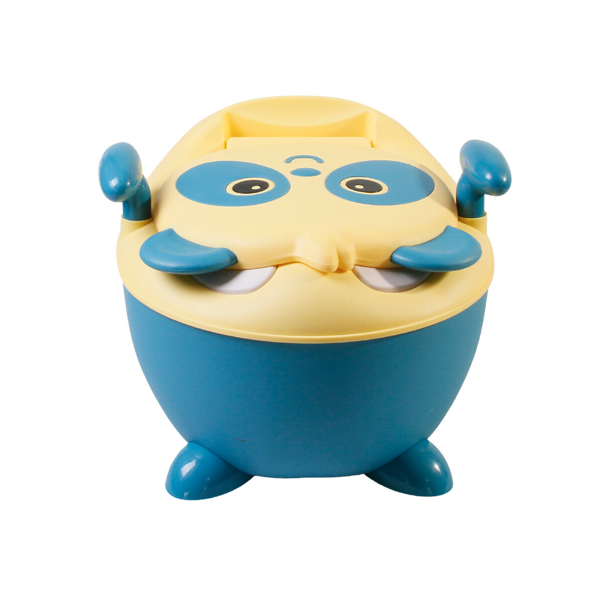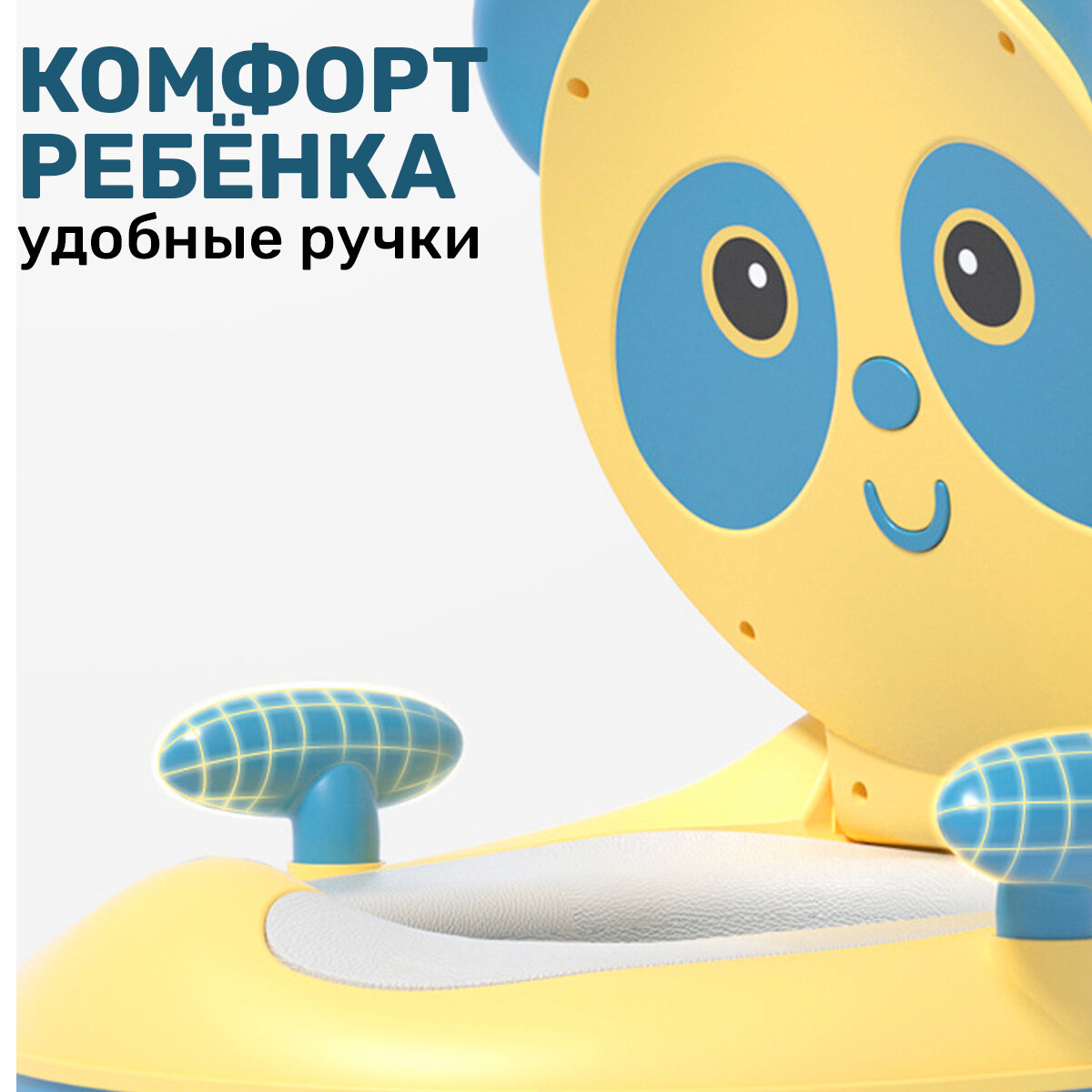 Горшок детский с мягким сиденьем, ручками и крышкой, ершиком, Панда (синий) интересное: