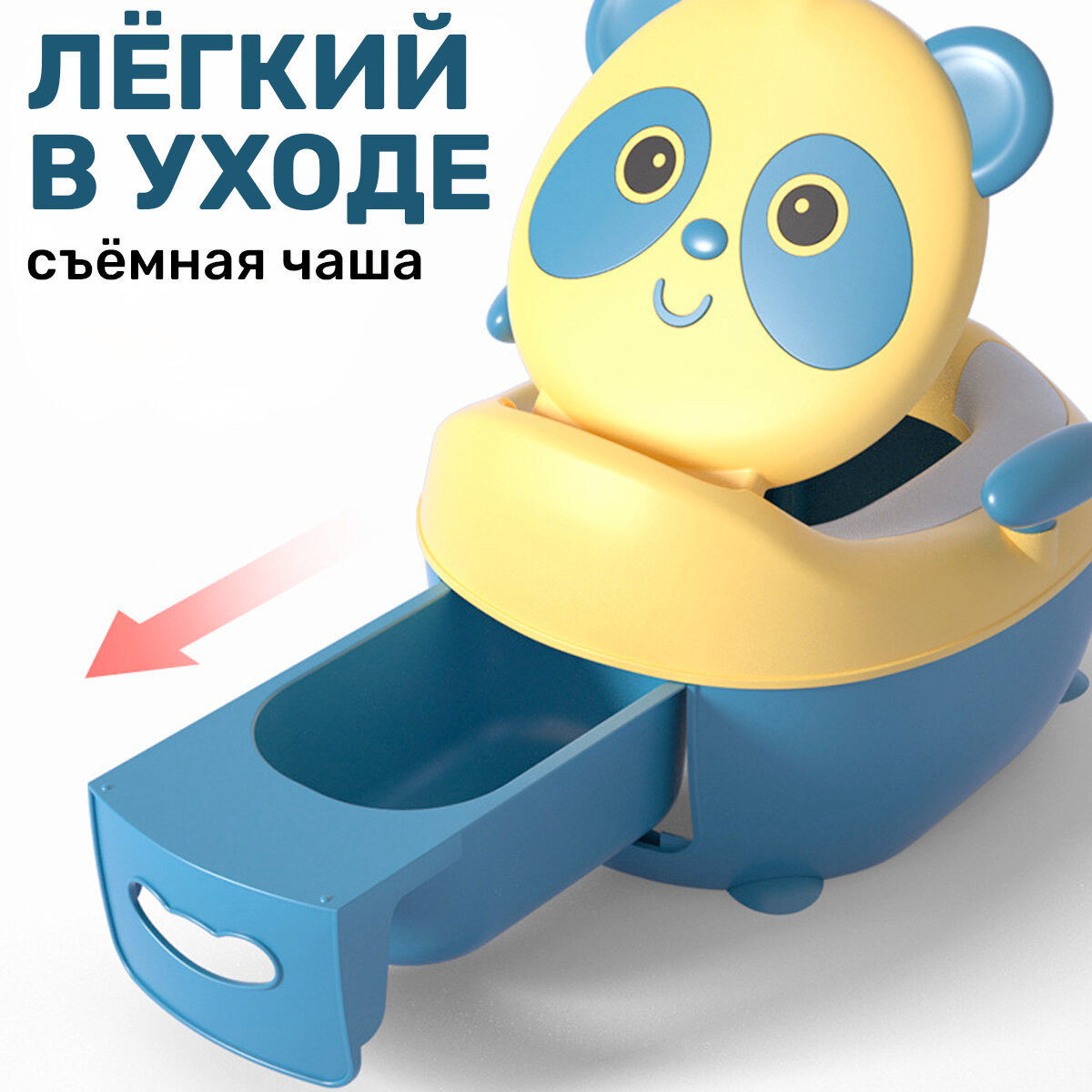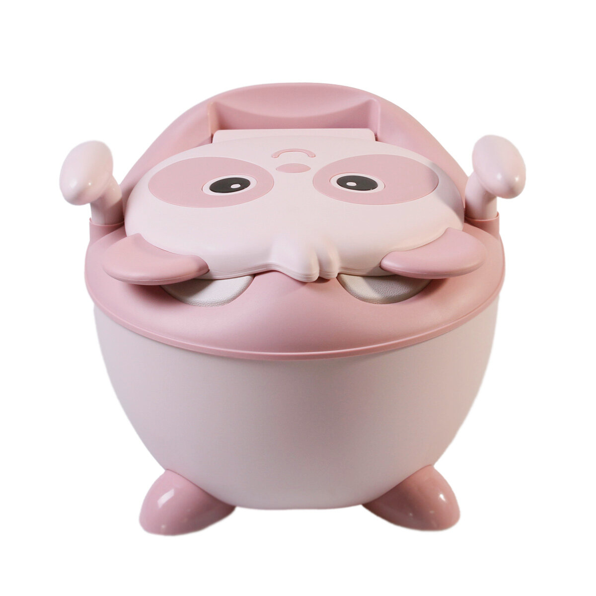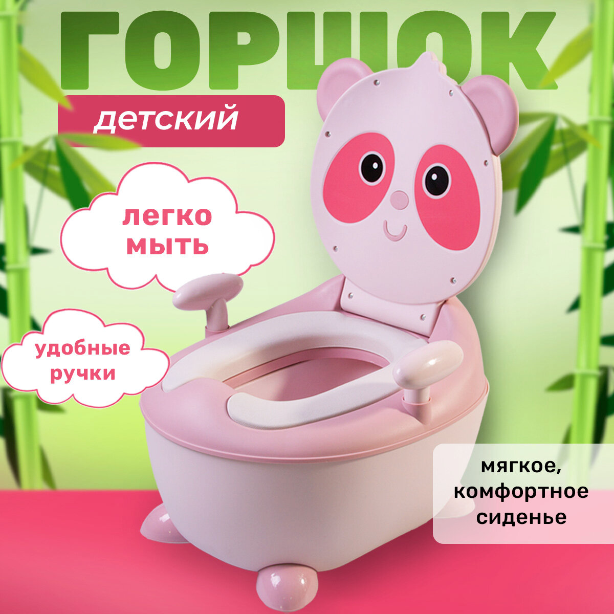Купить Горшок детский с мягким сиденьем, ручками и крышкой, ершиком, Панда (розовый)