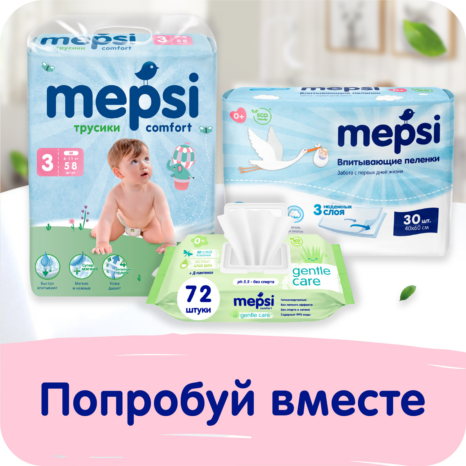 Пеленки одноразовые MEPSI детские впитывающие, 60х40, 30 шт, для новорожденных, малышей, собак ультратонкие, с абсорбентом