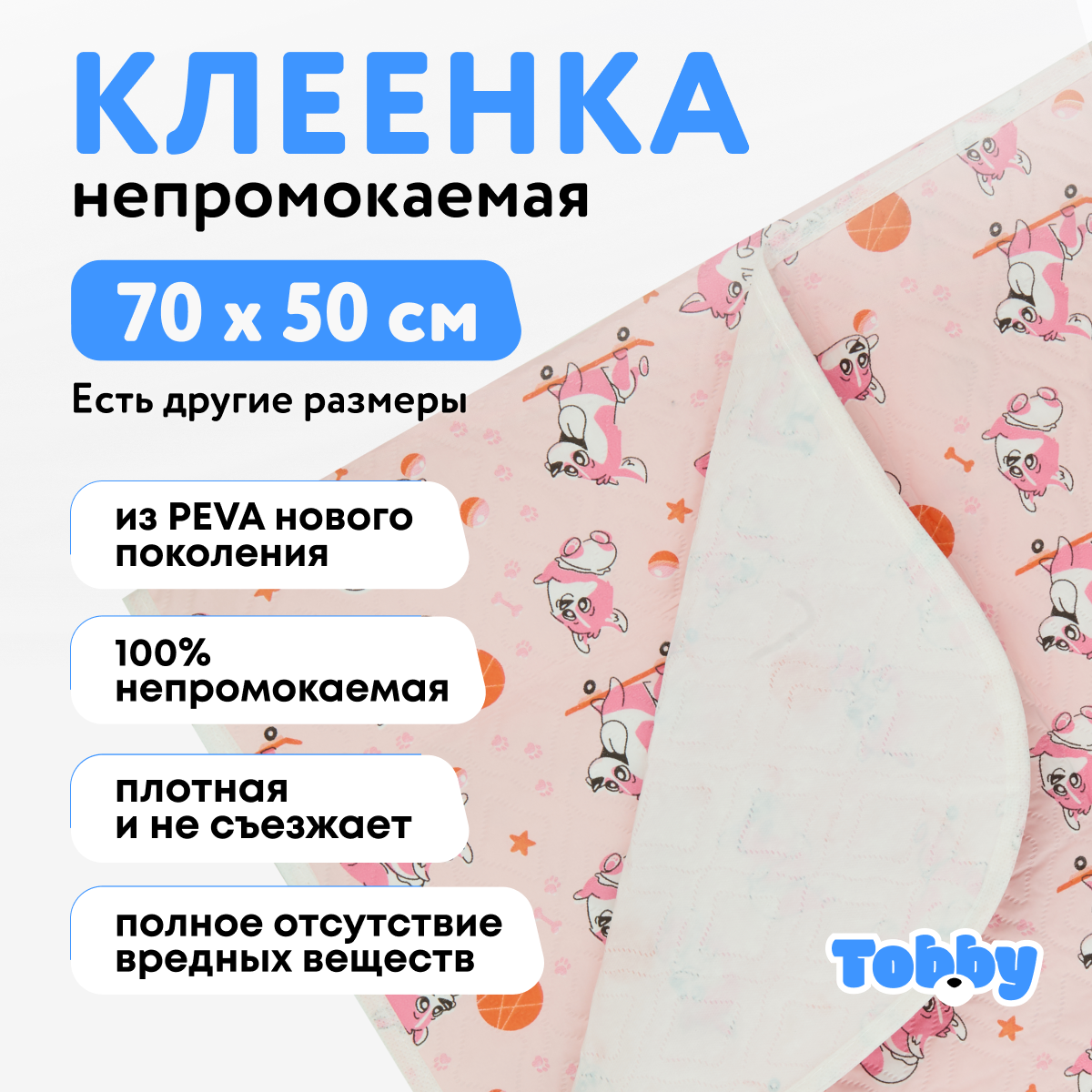 Клеенка детская Tobby непромокаемая, размер 70х50, цвет розовый, многоразовая