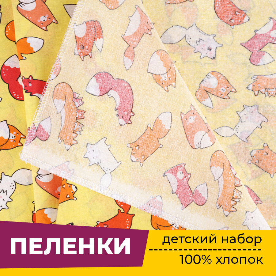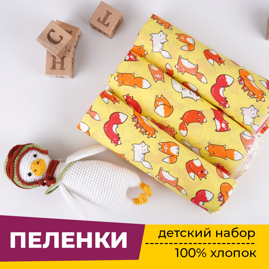Пеленки для новорожденных детей "Сарафаново" (Ситец 3 шт) 90х120 см "Лисята" (желтый) интересное: