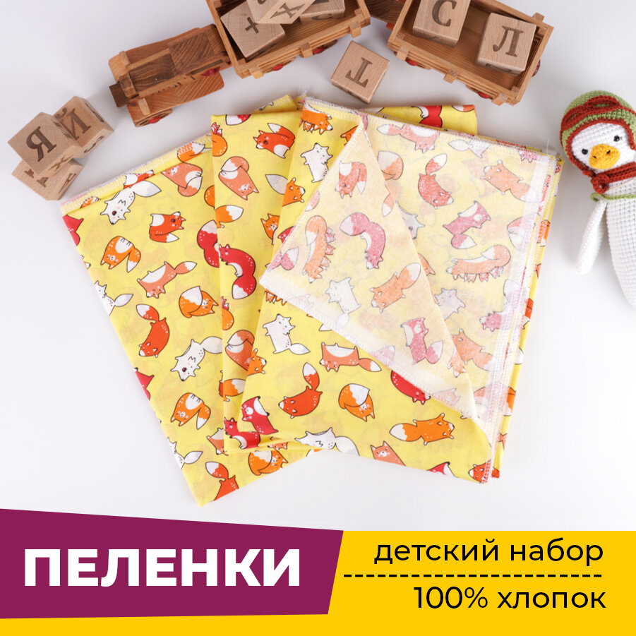 Купить Пеленки для новорожденных детей "Сарафаново" (Ситец 3 шт) 90х120 см "Лисята" (желтый)
