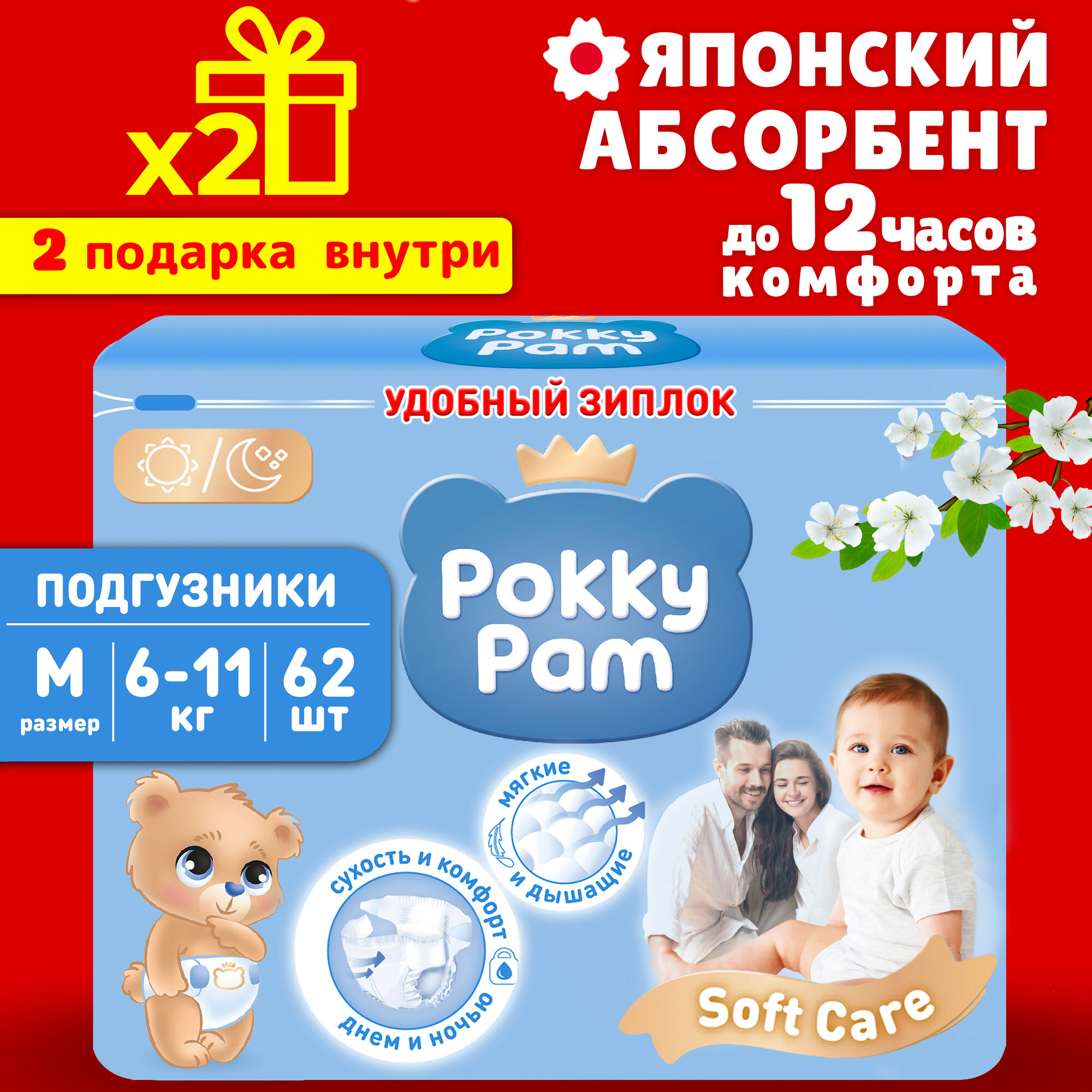 Подгузники детские, для детей, новорожденных POKKY PAM, размер M, 6-11 кг