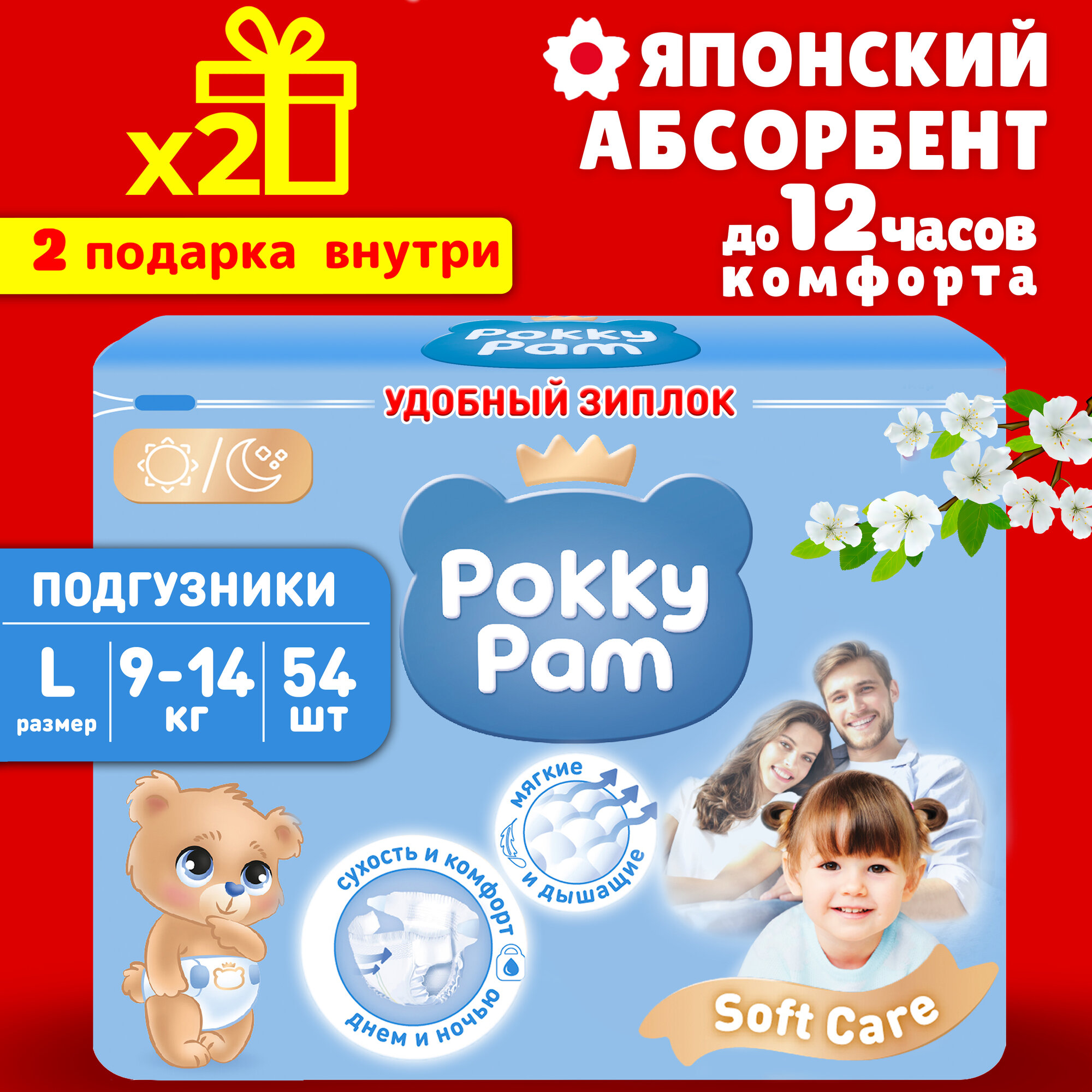 Подгузники детские, для детей, новорожденных POKKY PAM, размер L, 9-14 кг