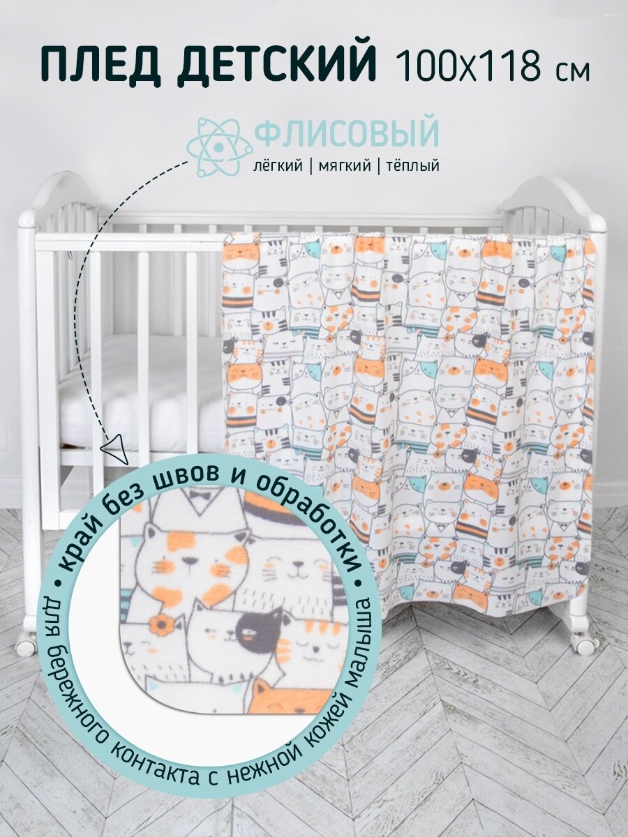 Плед для новорожденного 100х118 флисовый детский, "Коты"