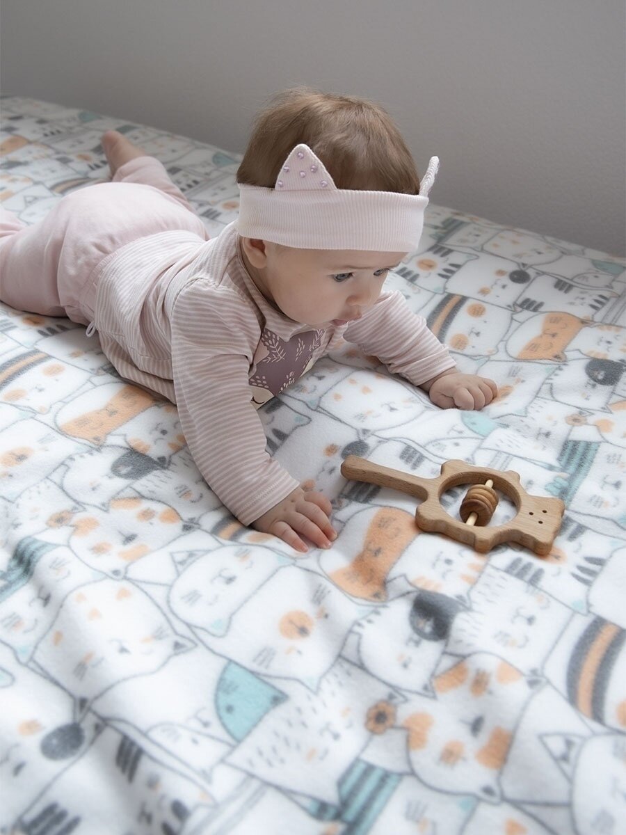 Плед для новорожденных флисовый в кроватку, коляску 100х118 см "Кошки" Baby Nice
