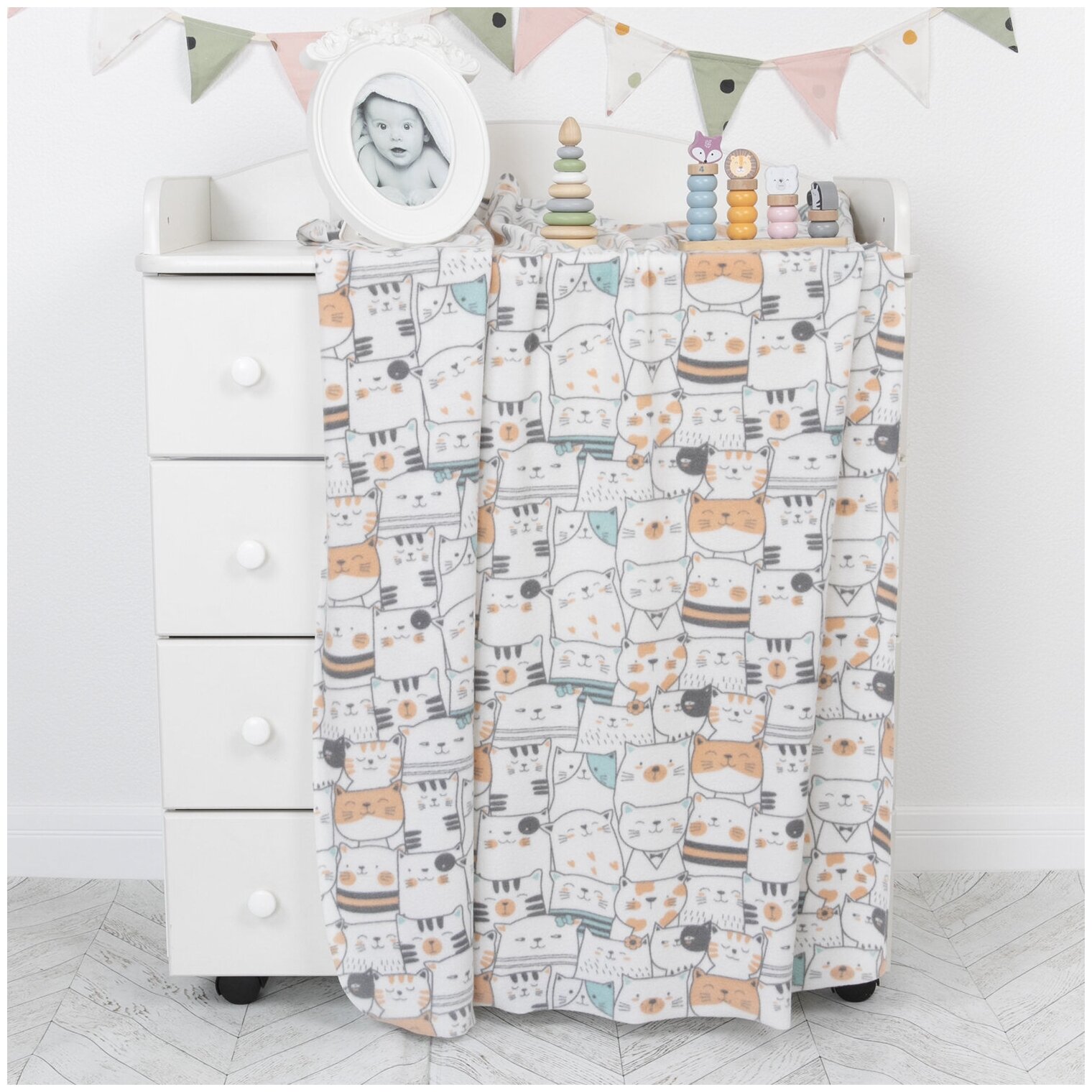 Купить Плед для новорожденных флисовый 100х118 см. "Коты "Baby Nice