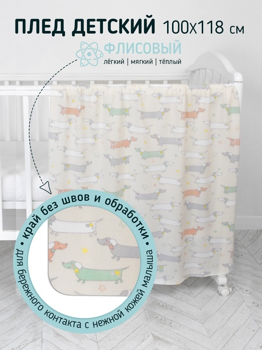 Купить Плед для новорожденных флисовый 100х118 см. "Таксы" Baby Nice