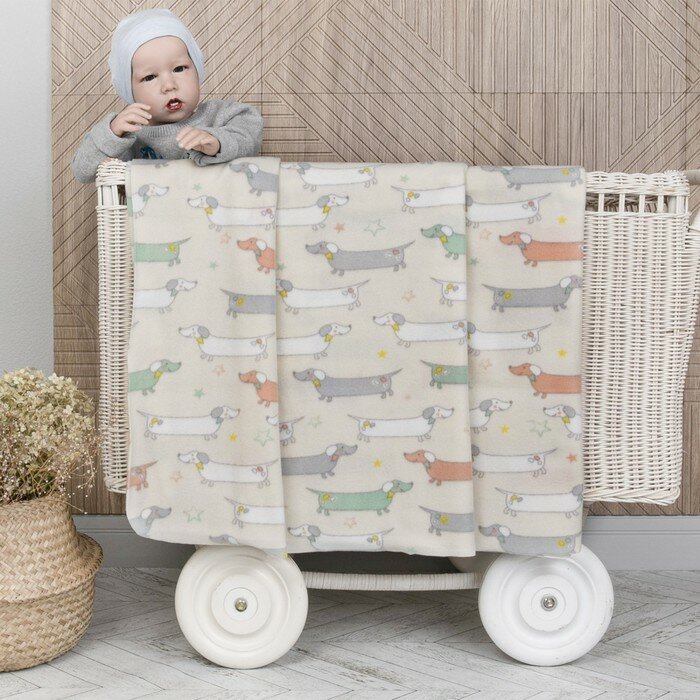 Плед для новорожденных флисовый 100х118 см. "Таксы" Baby Nice