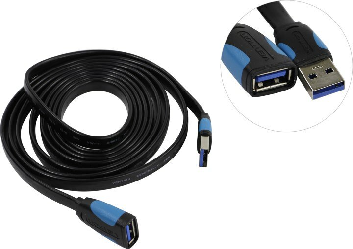 VAS-A13-B100, Vention USB 3.0 AM/AF - 1м, Кабель-удлинитель Vention USB 3.0 AM/AF - 1м плоский