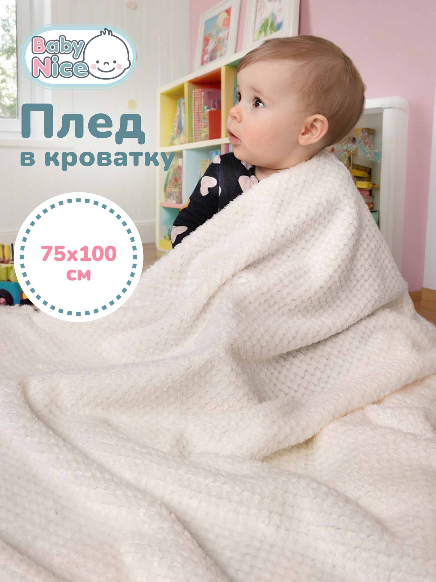 Купить Плед для новорожденного 75х100 пушистый детский в кроватку , коляску "Жаккард", молочный, белый однотонный