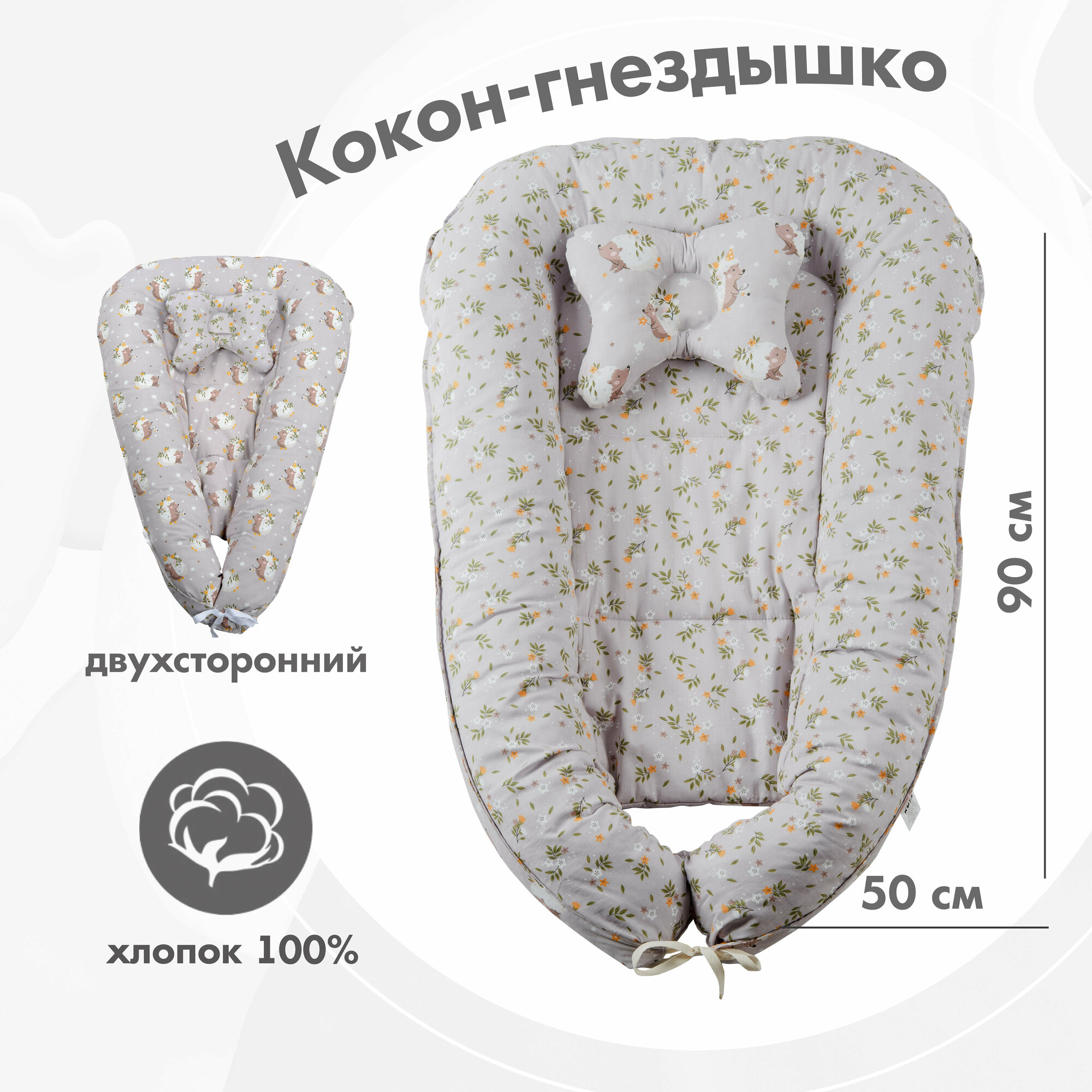 Кокон-гнездышко для новорожденных, KUZA, серый, унисекс, всесезонный, гипоаллергенный интересное: