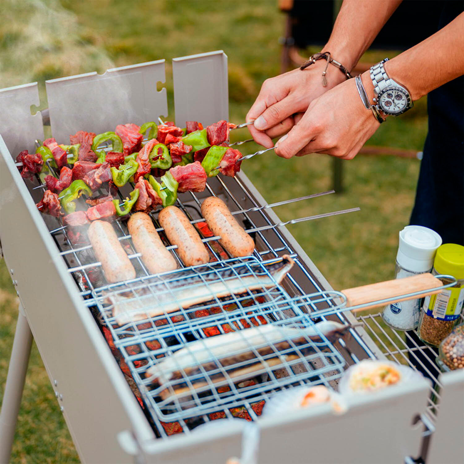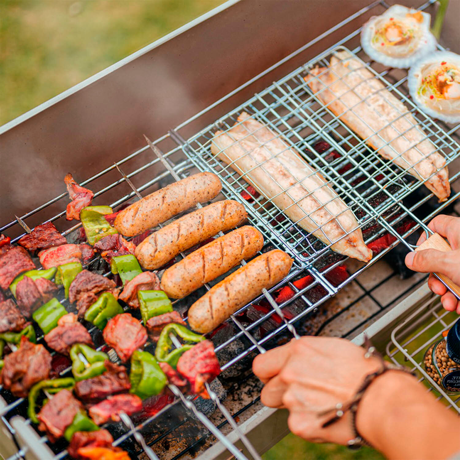 | Особенности | поддон для сбора жира / разборный / решетка / чехол |