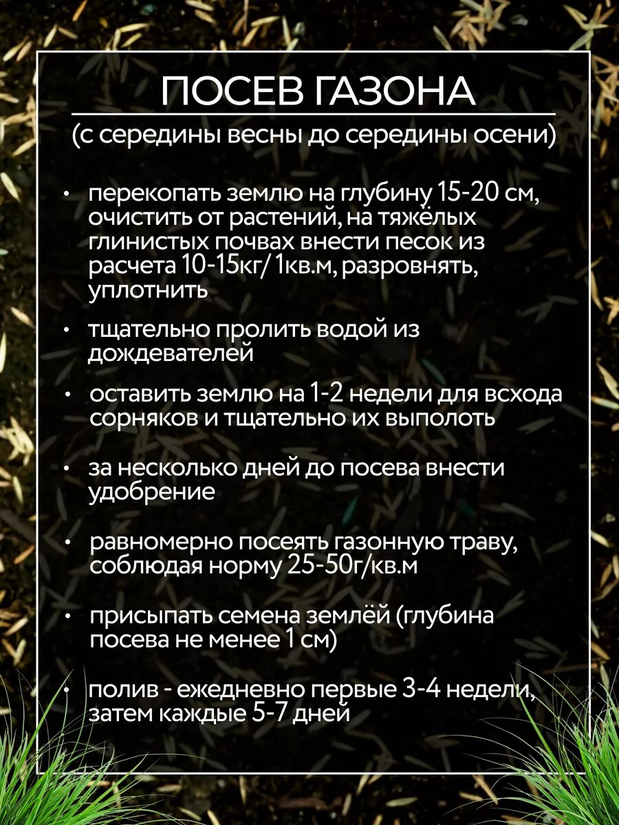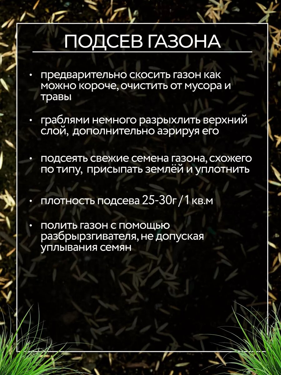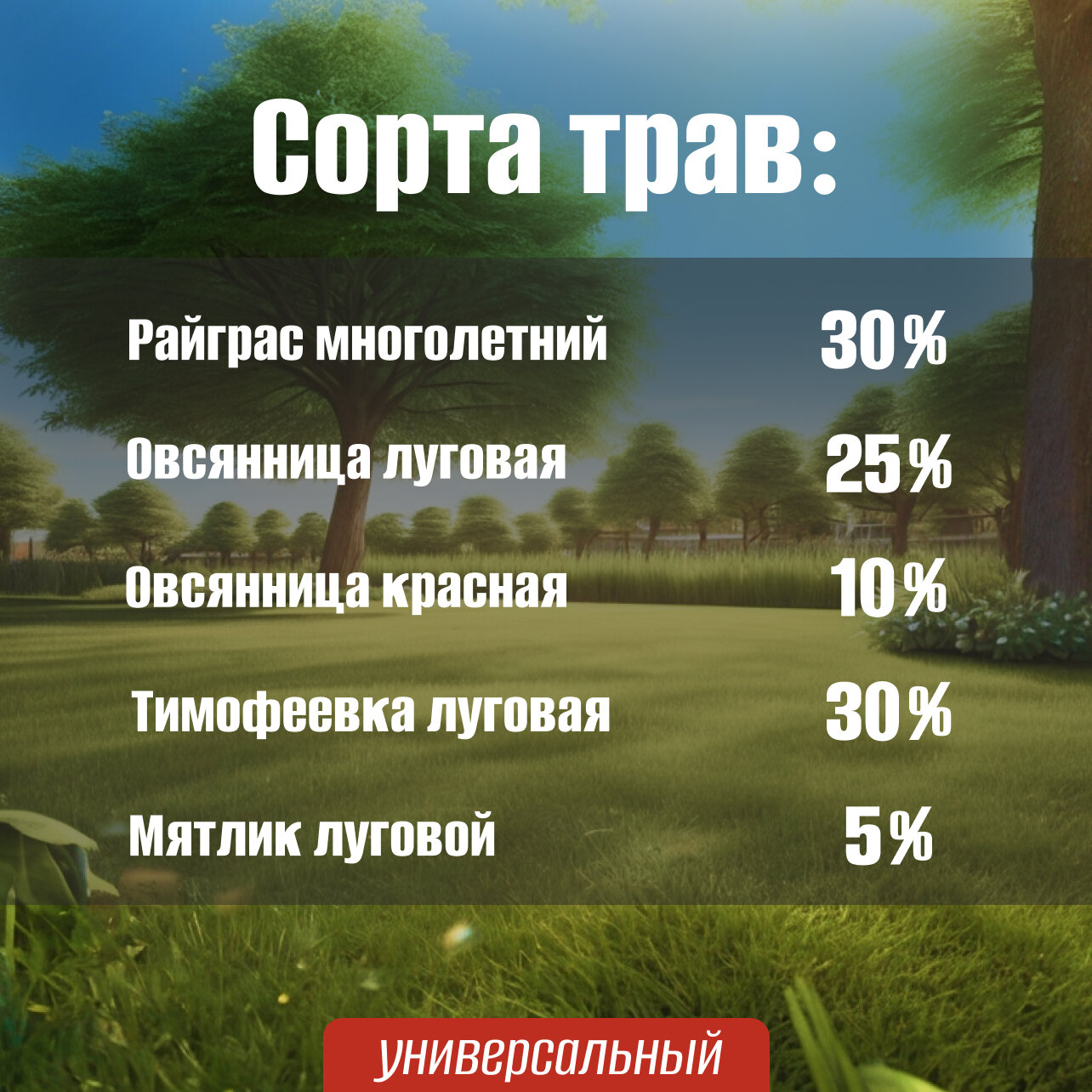| Трава | мятлик / овсяница красная / овсяница луговая / райграс многолетний / тимофеевка |