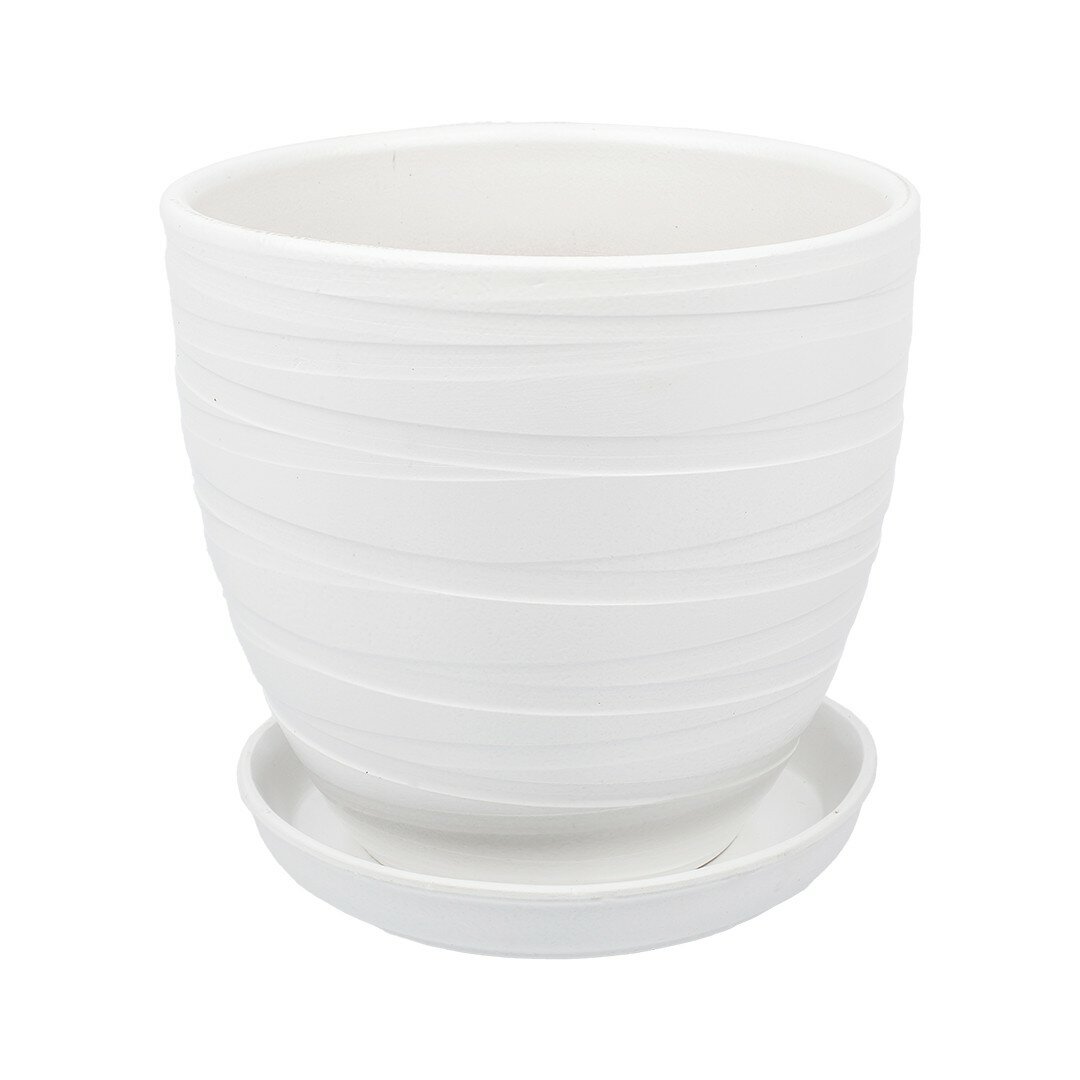 Керамический горшок цветочный ВеЩицы "Рельеф"с подставкой блюдцем / объем 1,4 л, цвет белый