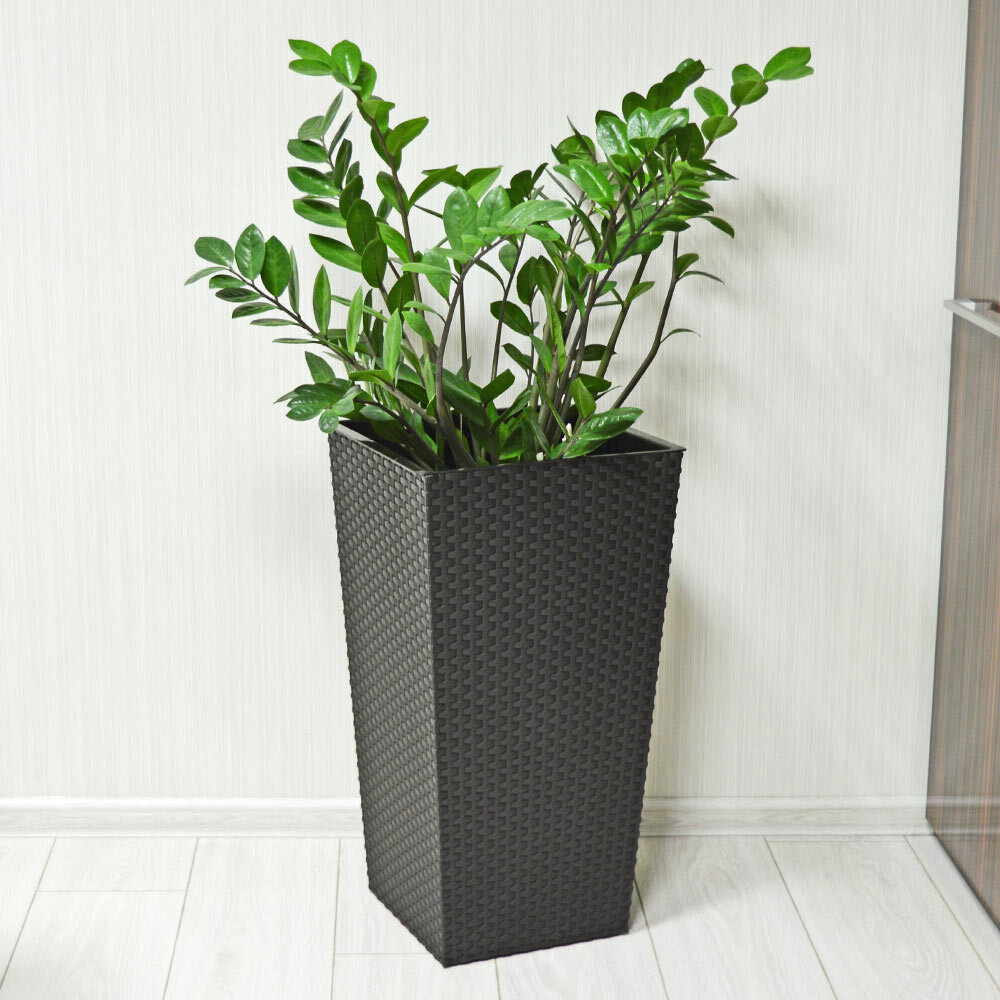 Купить Кашпо напольное Альтернатива Ротанг, 32,5 x 32,5 x 61 см, со вставкой, мокко