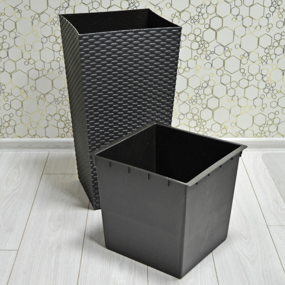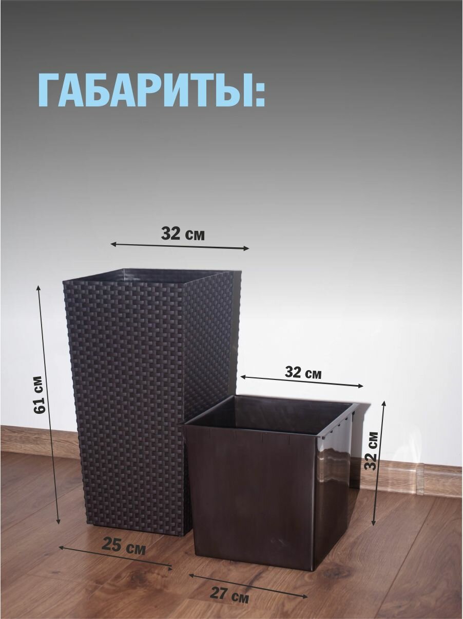 Кашпо напольное "Ротанг" 340х320х615мм (со вставкой)(мокко) 27/47л. М8848 Пластмасса альтернатива