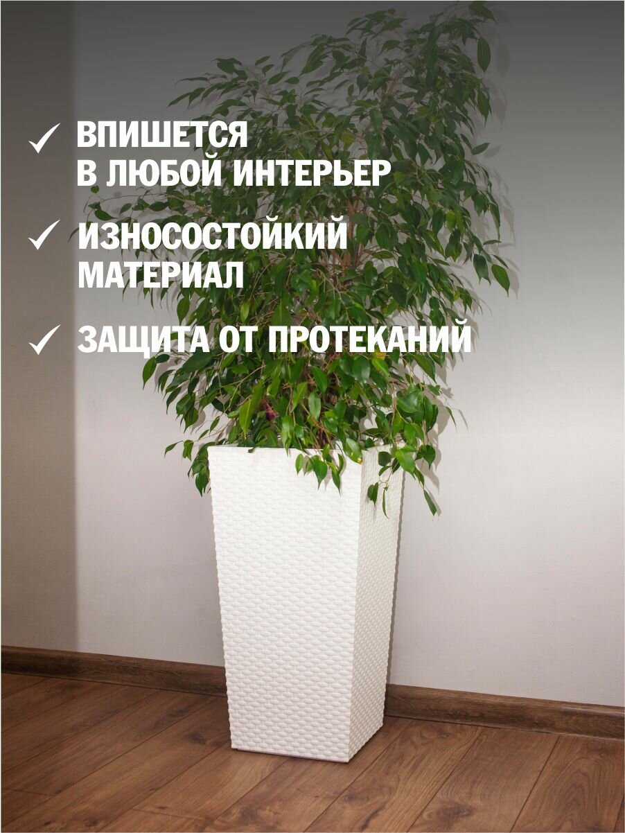 Кашпо напольное "Ротанг" со вставкой (270*270*520мм) М6826 белый