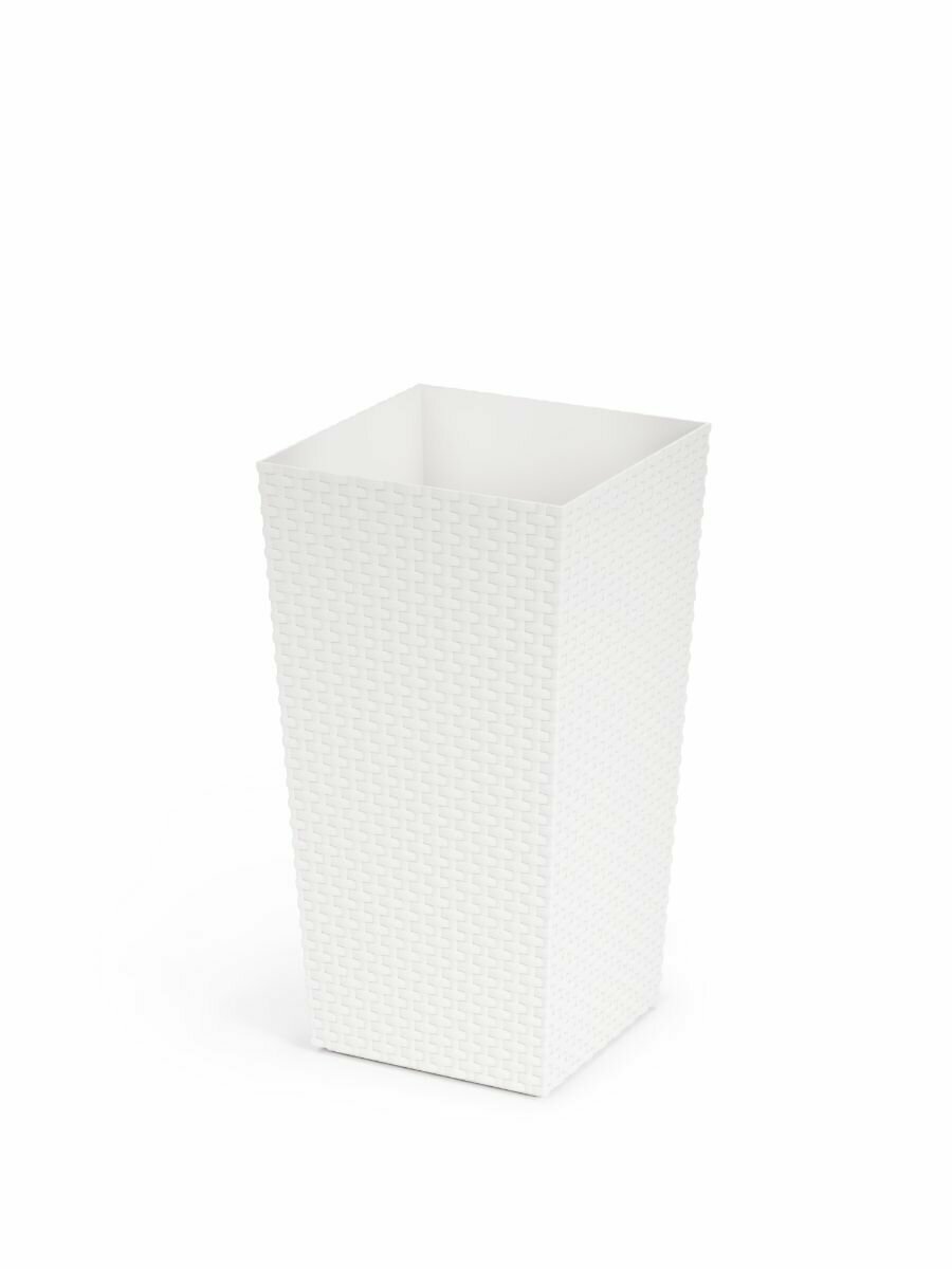 Кашпо напольное Альтернатива Ротанг, 27 x 27 x 52 см, со вставкой, белое