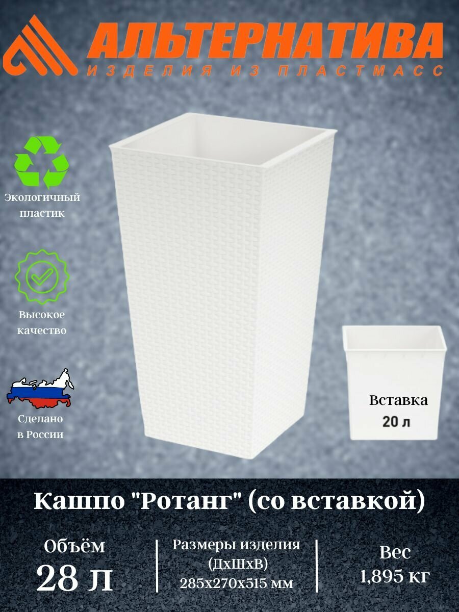 Купить Кашпо напольное "Ротанг" со вставкой (270*270*520мм) М6826 белый