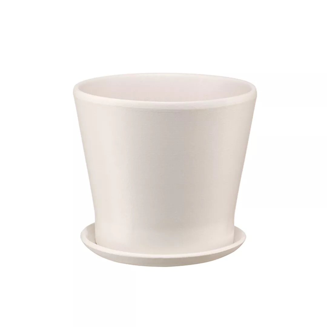 Купить Керамический горшок цветочный ВеЩицы "Флора" с подставкой блюдцем / Горшок для цветов с поддоном / Горшок для растений / 14,5х14,5х13 см, объем 1,0 л, цвет бежевый
