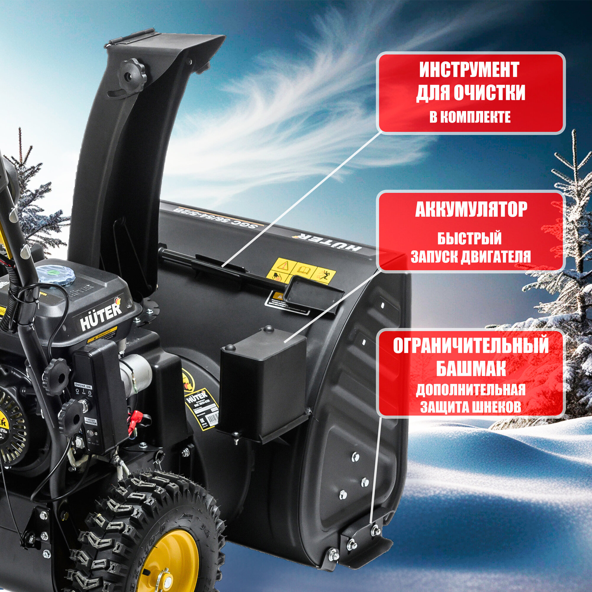 Снегоуборщик Huter SGC 56/54-5/2B интересное: