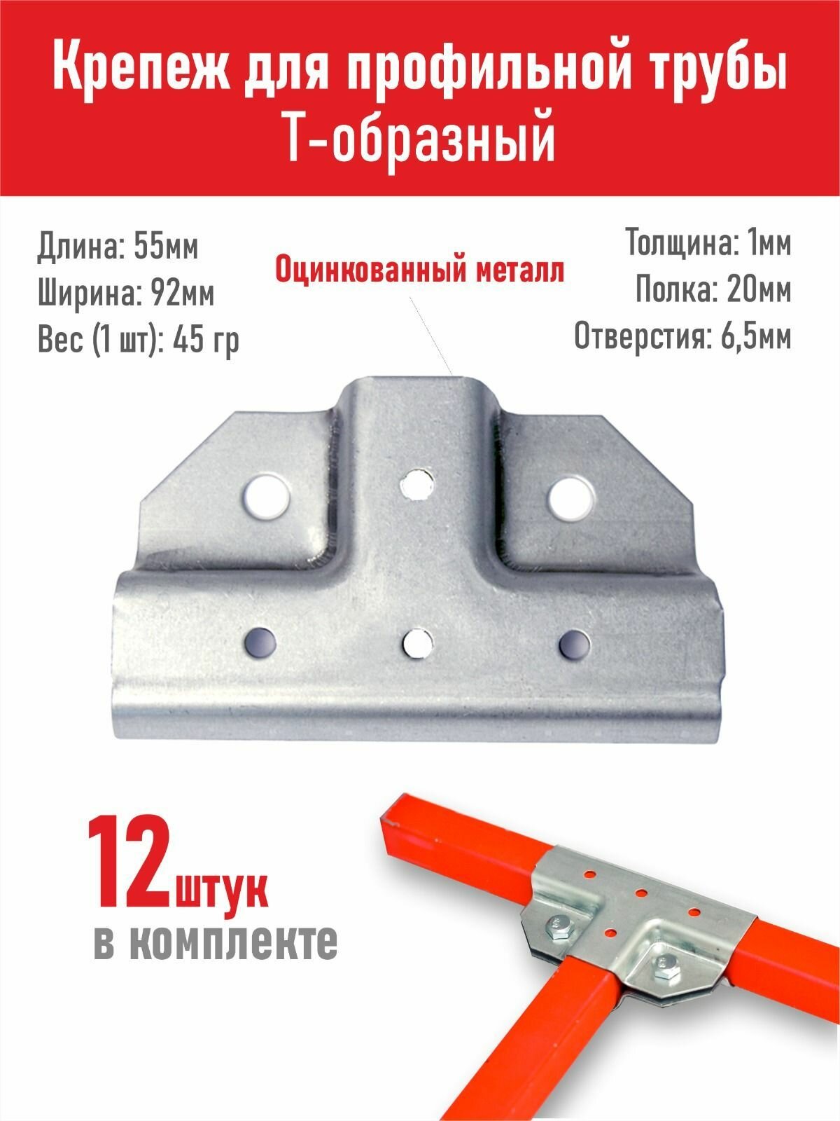 Краб-система Т-образная на трубу 20х20мм /Набор крепежа для профильной трубы 12шт.(6 креплений)/ для теплицы, навеса, беседки интересное: