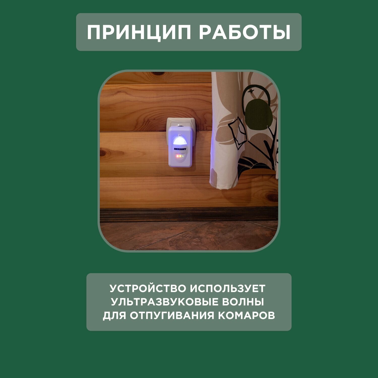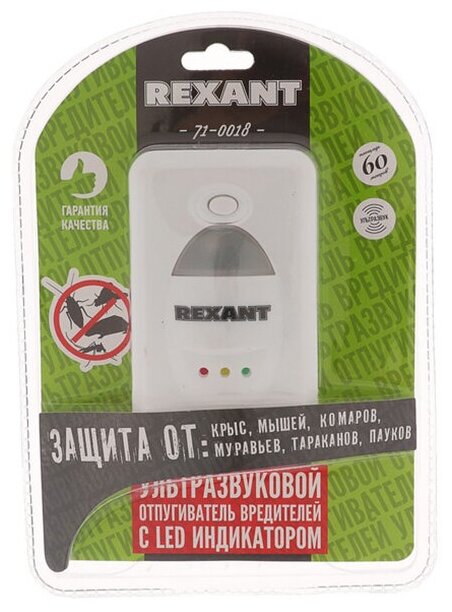 | Дополнительная информация | Отпугиватель крепится непосредственно к розетке. Для качественной работы рекомендуем использовать прибор на открытом пространстве: ультразвук не проходит через стены, плотные предметы, поглощается текстилем. Результат можно оценить уже через две недели. |