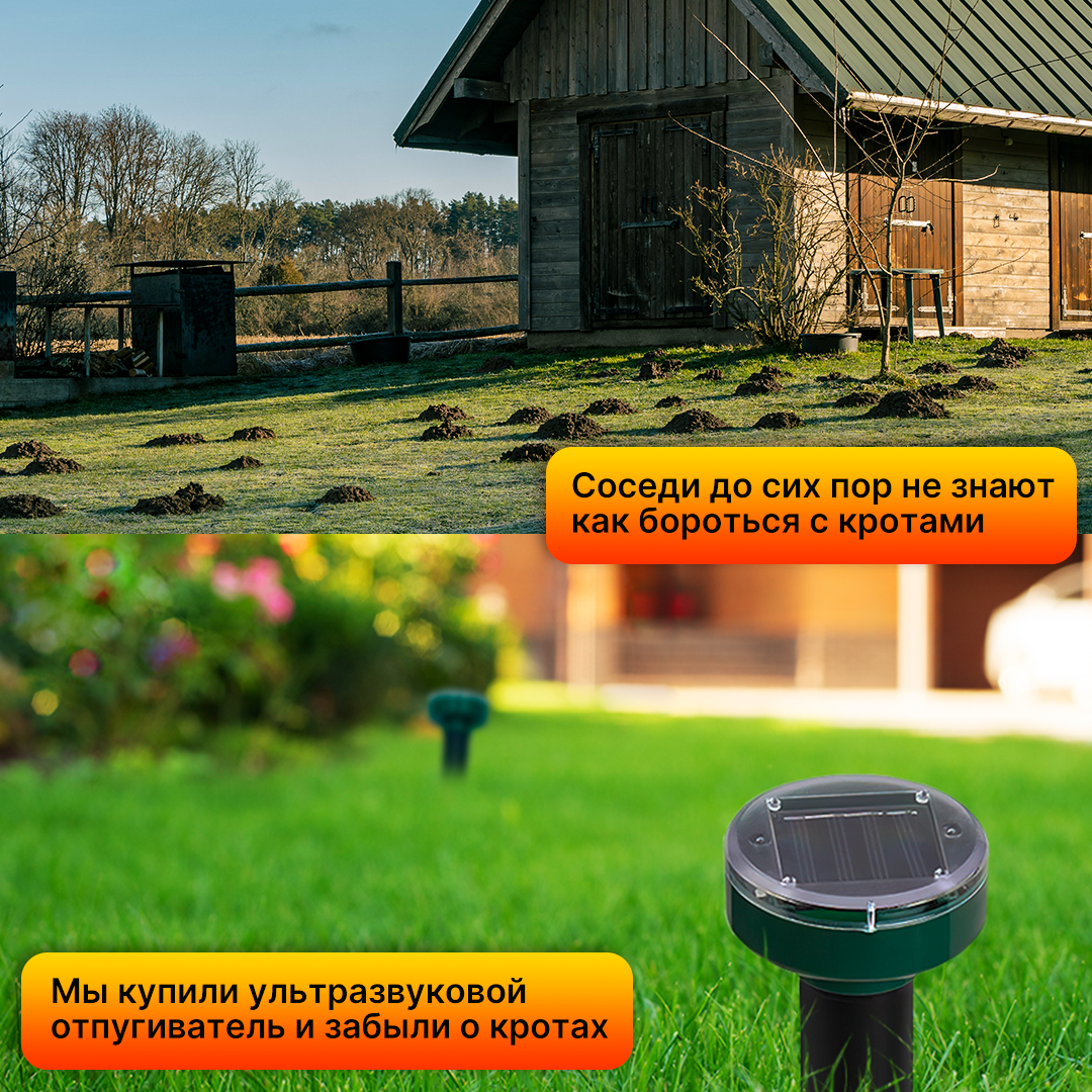 Ультразвуковой отпугиватель кротов для сада огорода и дачи rexant, дачное средство против грызунов и вредителей на солнечных батареях, прибор аппарат защитник участка и солнечная панель интересное: