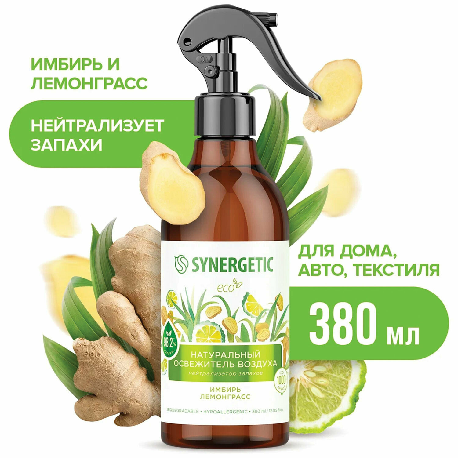 Освежитель воздуха спрей Synergetic "Имбирь и лемонграсс" 380мл (900004), 6шт.