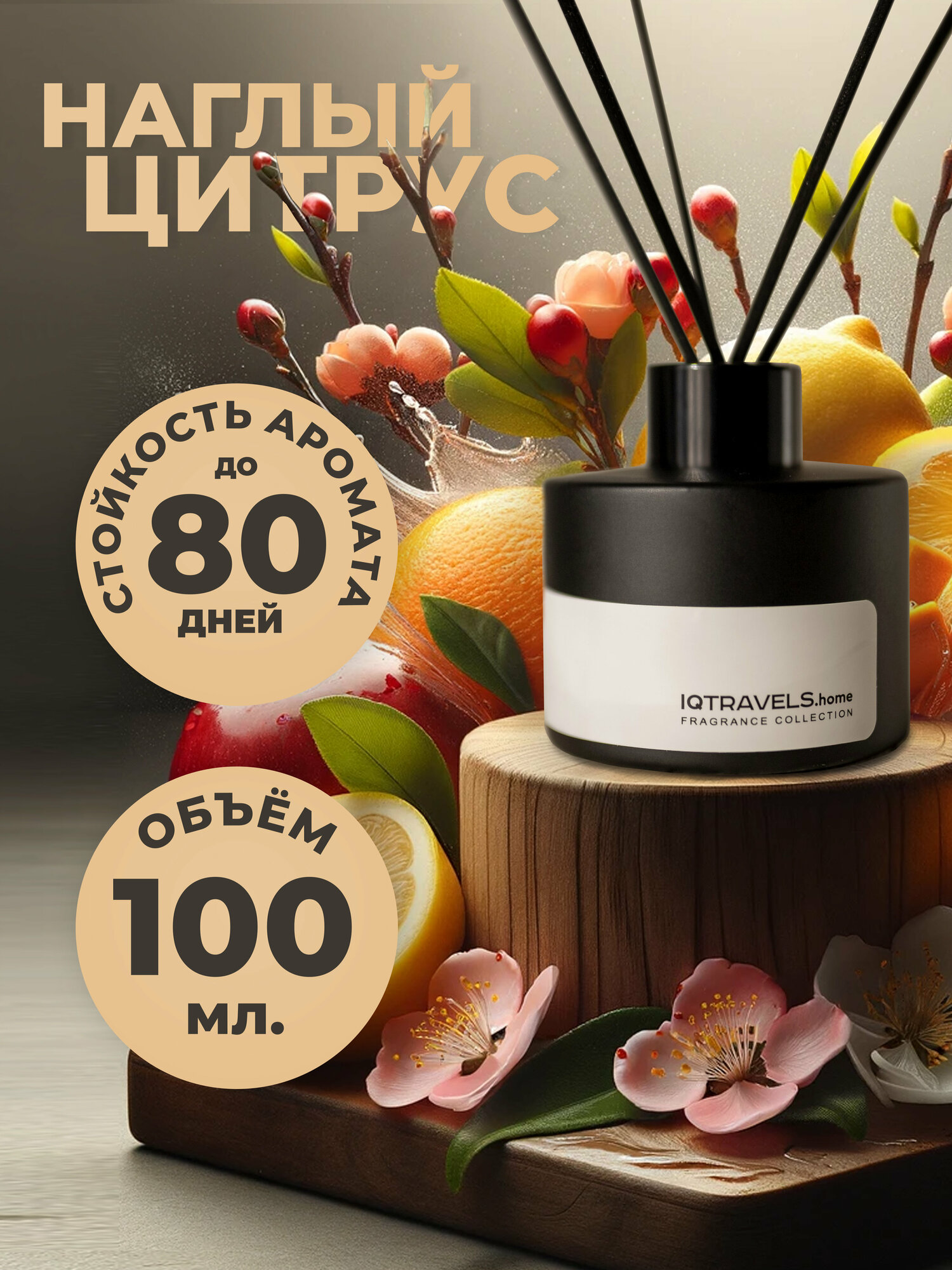 Ароматический диффузор для дома с палочками IQTRAVELS - Наглый цитрус - 100 мл.