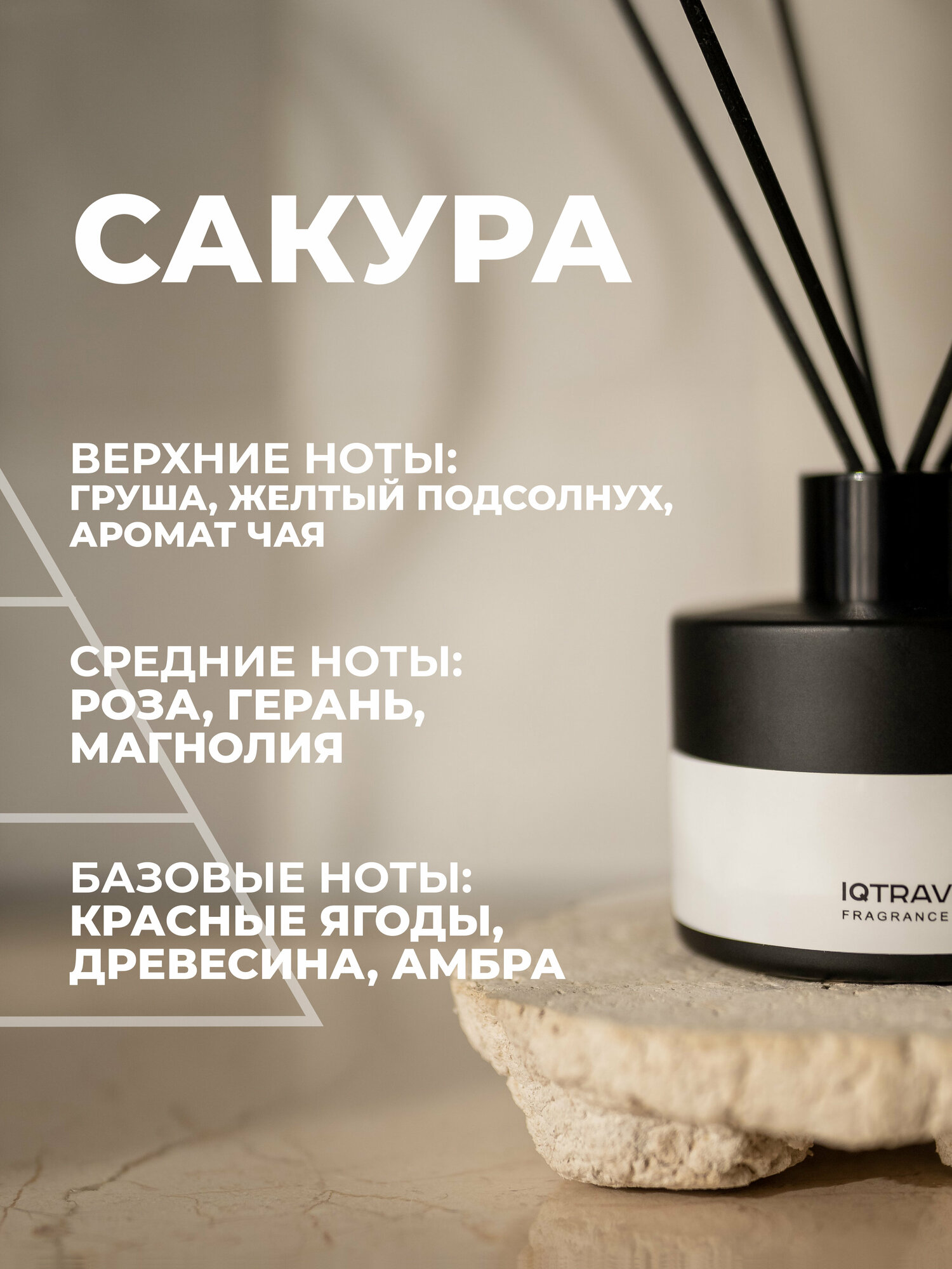 Ароматический диффузор для дома с палочками IQTRAVELS - Сакура - 100 мл. интересное: