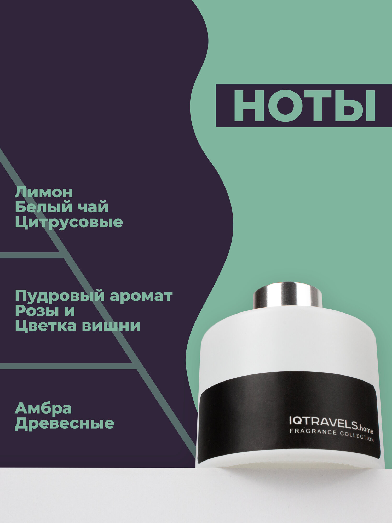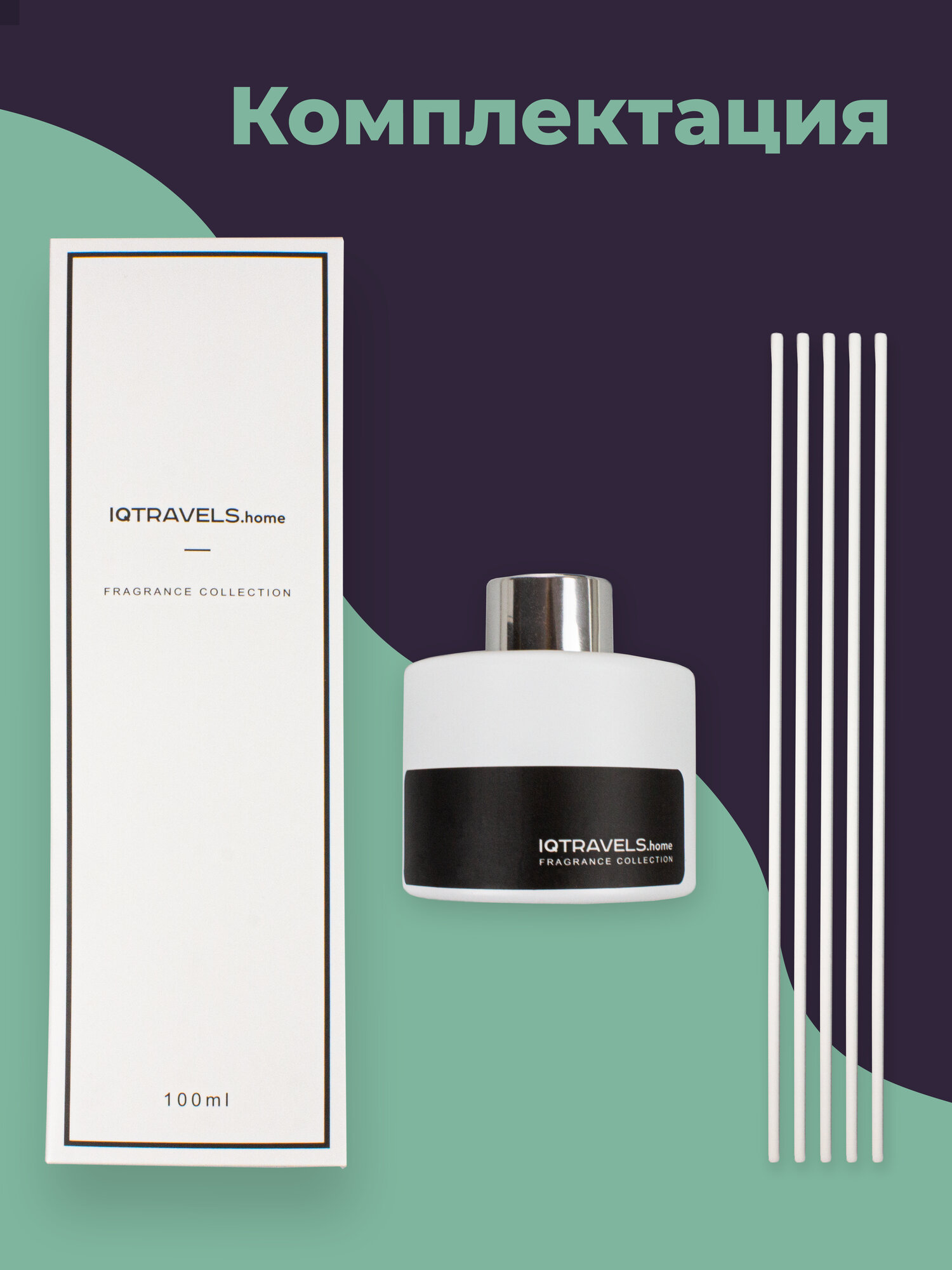 Ароматический диффузор для дома с палочками IQTRAVELS - Белый чай - 100 мл.