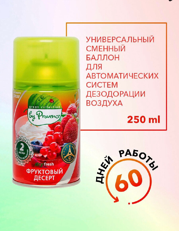 Green collection by Provence освежитель воздуха, сменный баллон Фруктовый десерт 250 мл. интересное: