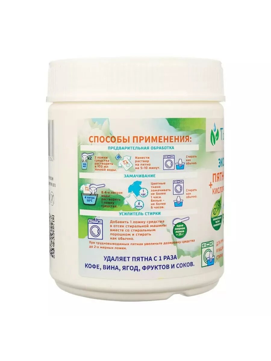 Экологичный пятновыводитель - кислородный отбеливатель тысяча озер для белого, цветного белья и одежды с комплексом энзимов 500 г