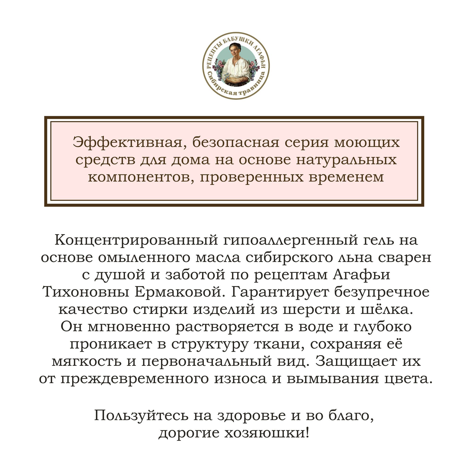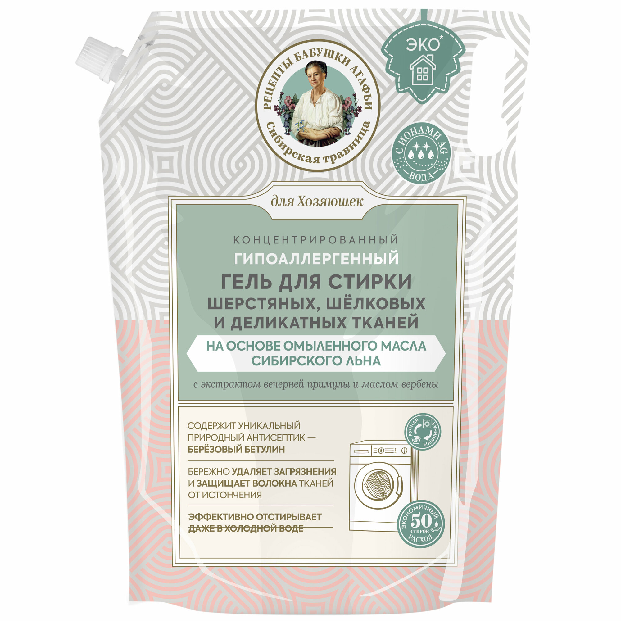 Купить Гель для стирки Рецепты бабушки Агафьи Для Хозяюшек шерстянных шёлковых и деликатных тканей на основе омыленного масла льна Концентрированный, 2000 мл