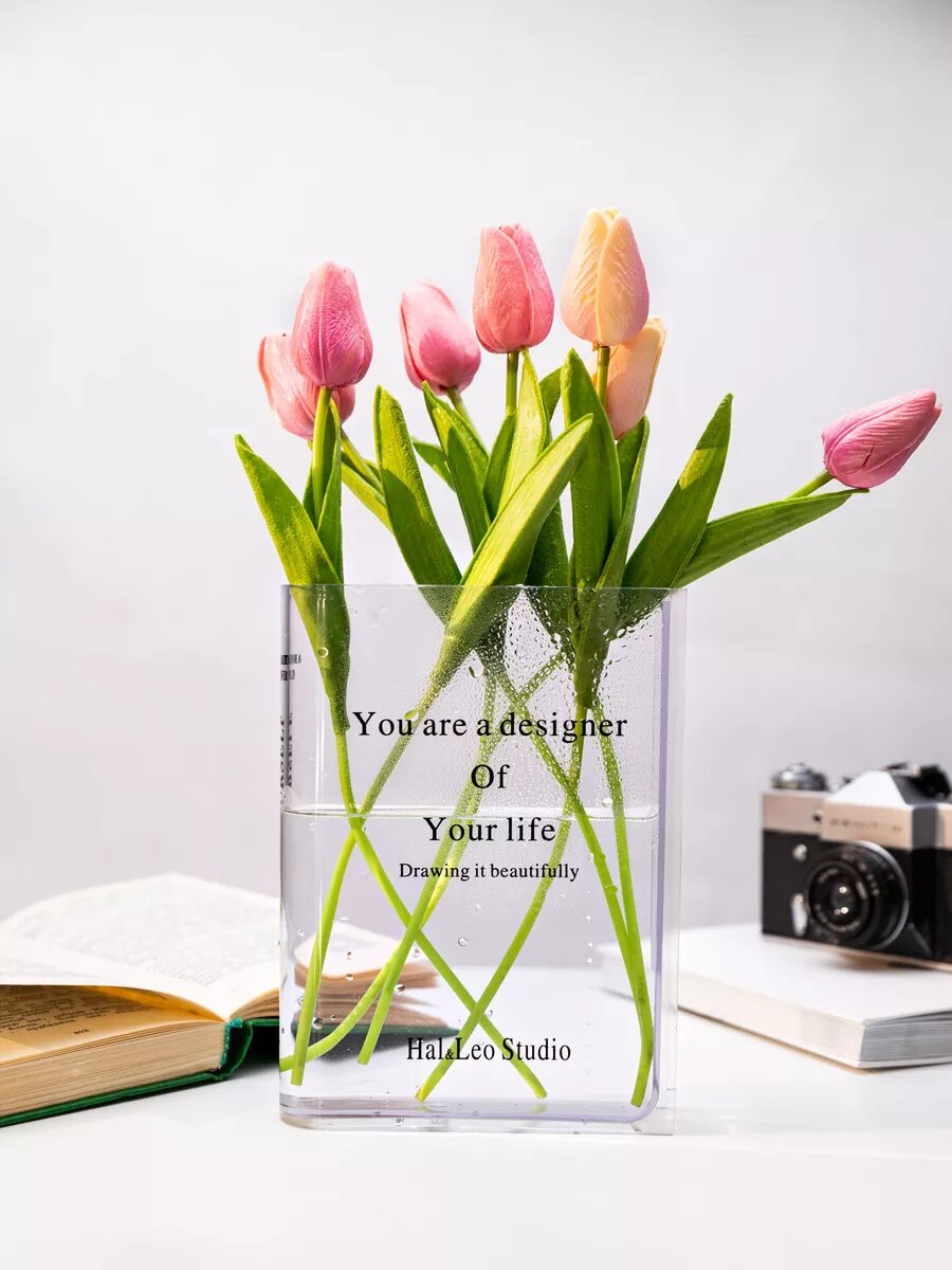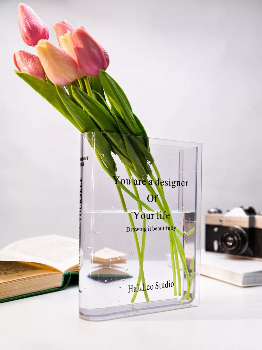 Ваза книга интерьерная для цветов и сухоцветов. Часы