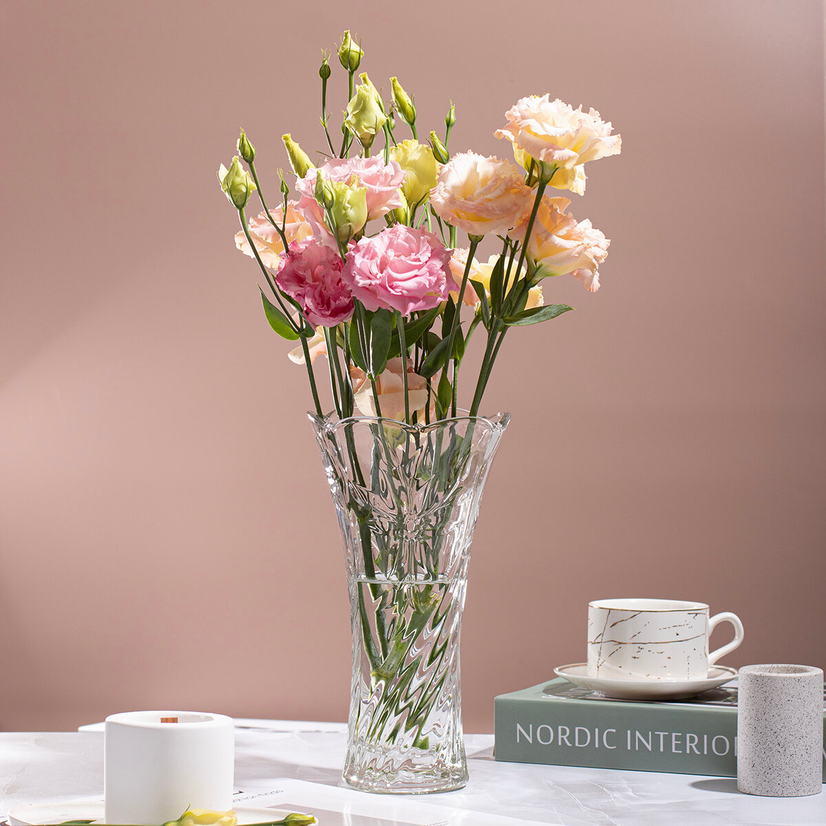 Прозрачная настольная ваза Bogacho Белла из стекла на декоративной ножке для букетов, высоких цветов и сухоцветов
