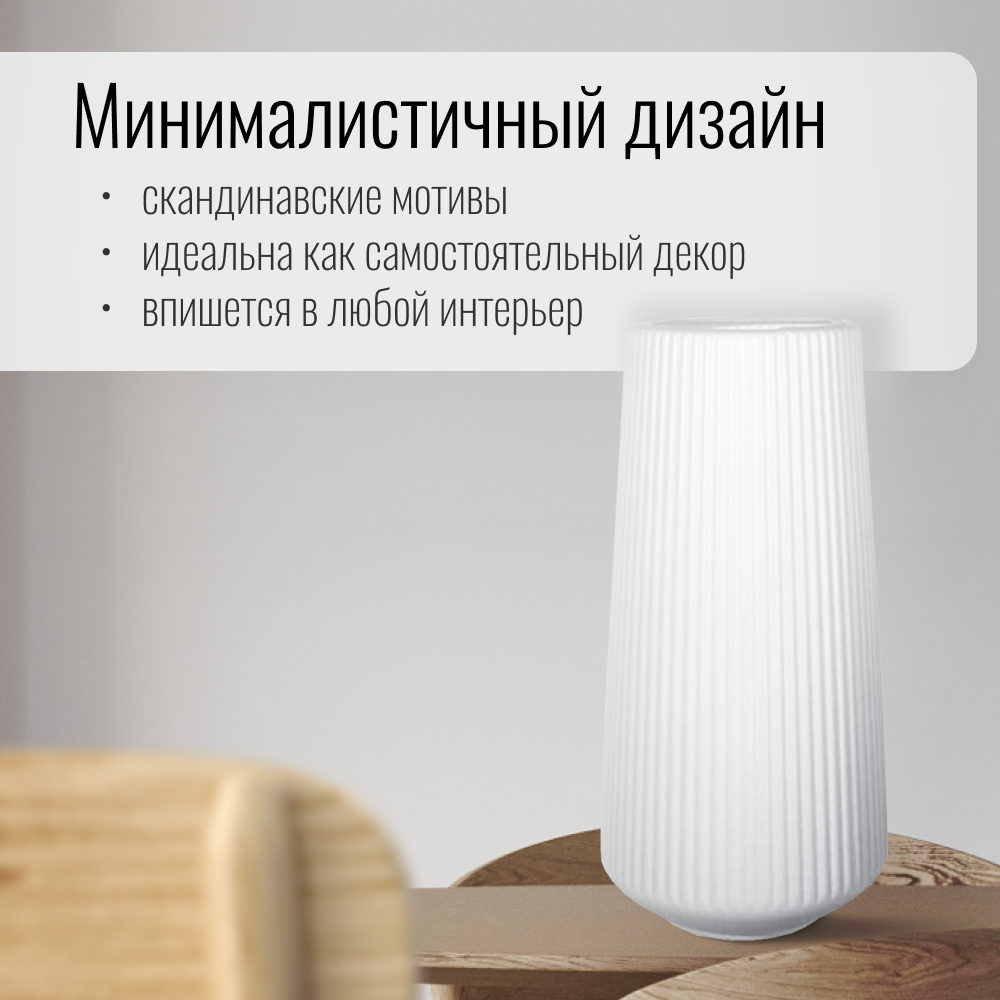 Интерьерная ваза для цветов и сухоцветов из пластика Homium Mimi, цвет белый, Н25.5см