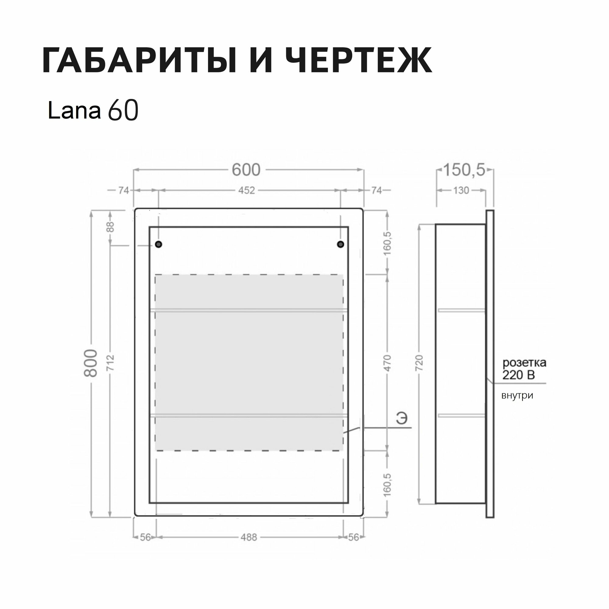 Шкаф зеркальный с подсветкой Lana 60 с часами, антизапотевателем и сенсорным выключателем интересное: