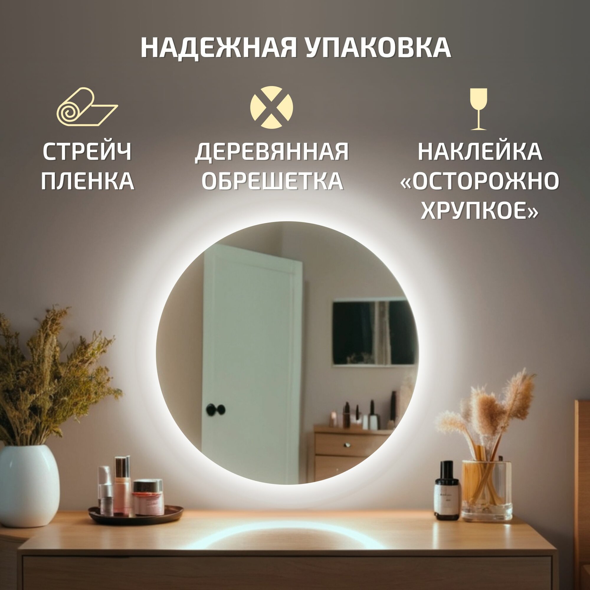 Настенное зеркало с подсветкой в ванную прихожую круглое сенсорный выключатель 4000К 70 см