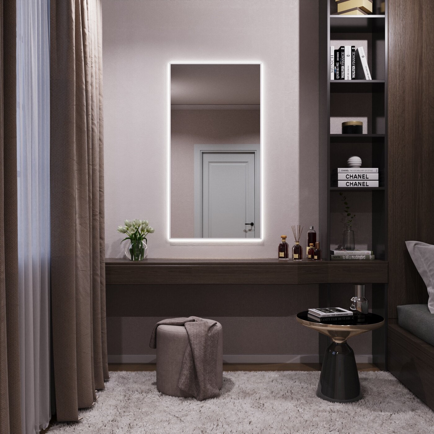 СохранитьЗеркало с подсветкой в алюминиевой раме настенное Market-house 130х80 см. Свет: Нейтральный Белый 6000К. Белое интересное: